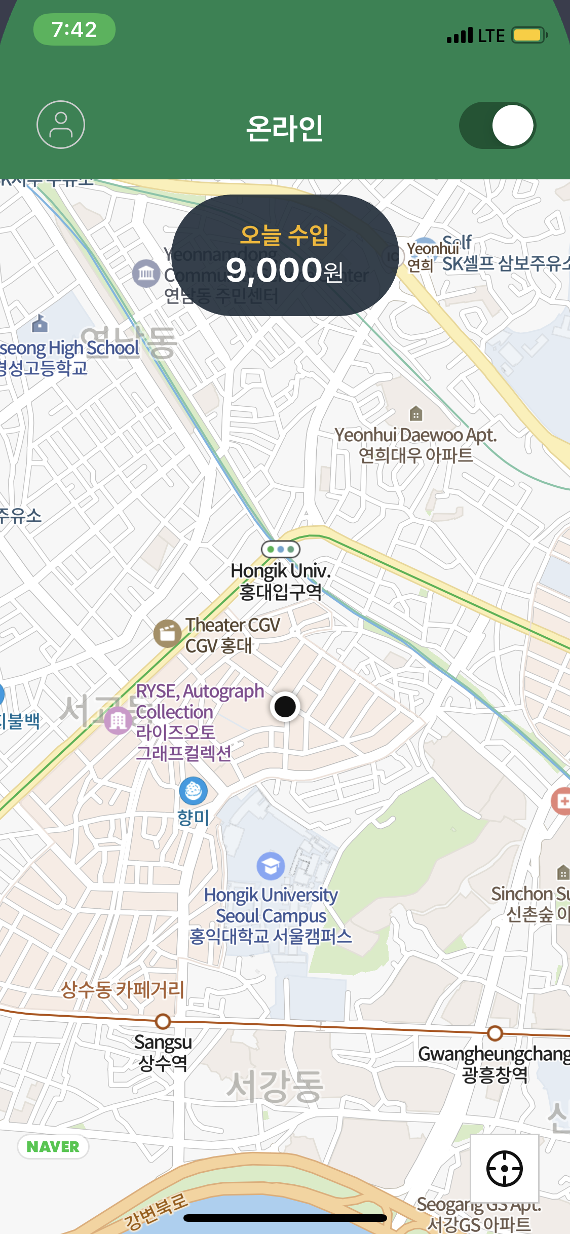홍대 중심부에서 배회하던 중 콜이 옵니다.