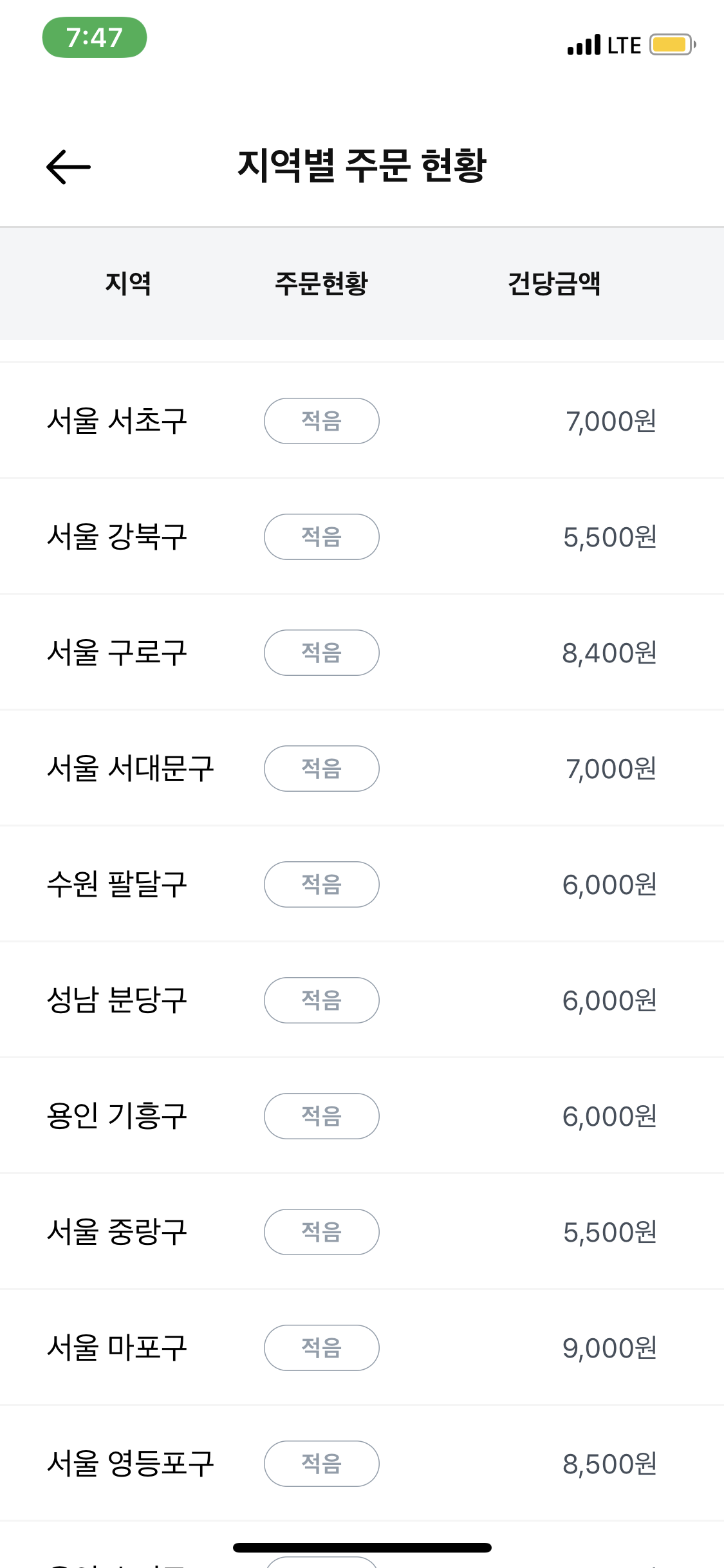 아쉽게도 더 이상 콜이 오지 않았습니다.