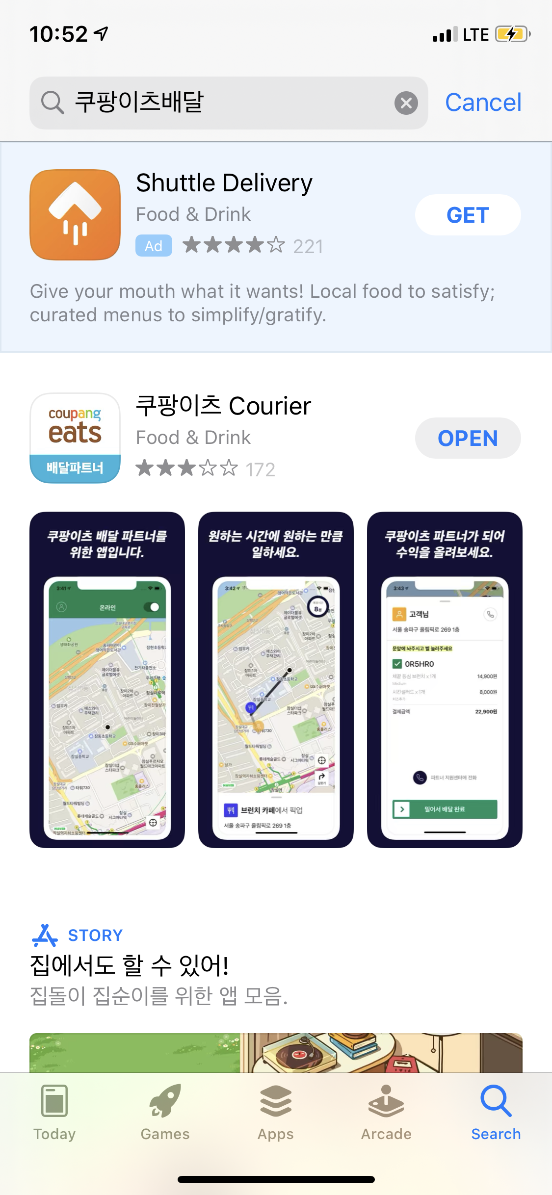 '쿠팡이츠 Courier' 어플을 설치합니다.