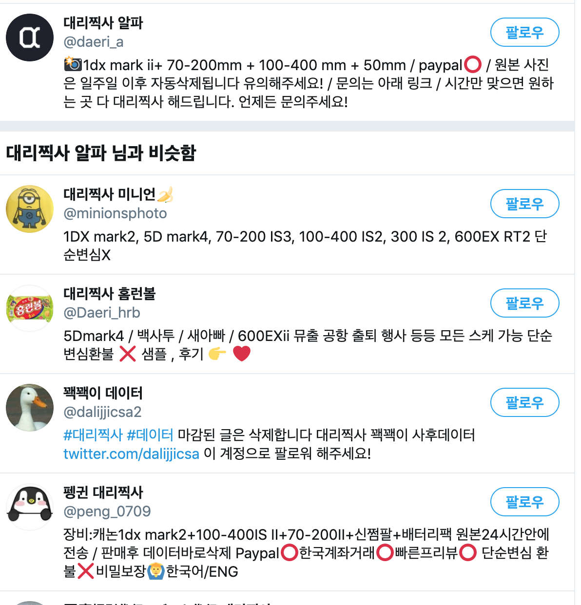 대리찍사들이 트위터에 행사 글을 올리면