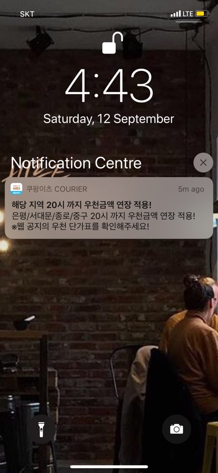 이상으로 쿠팡이츠 도보 배달의