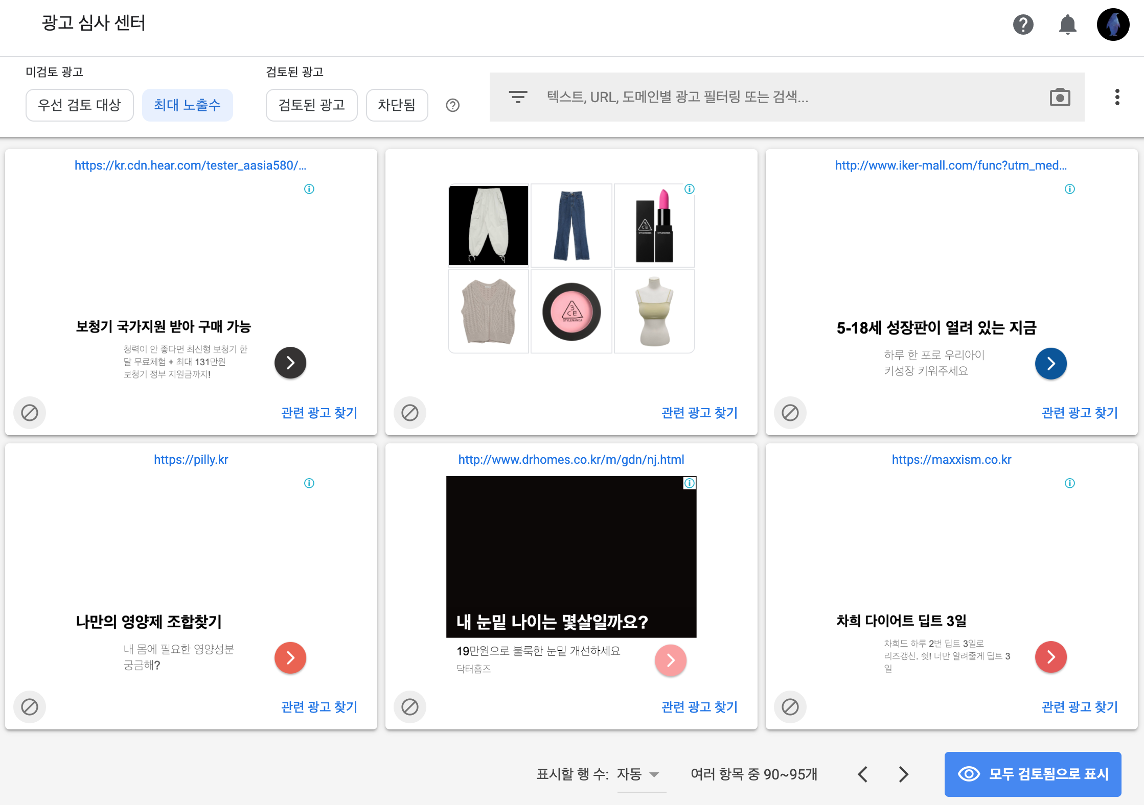 검토된 광고와 미검토 광고 모두