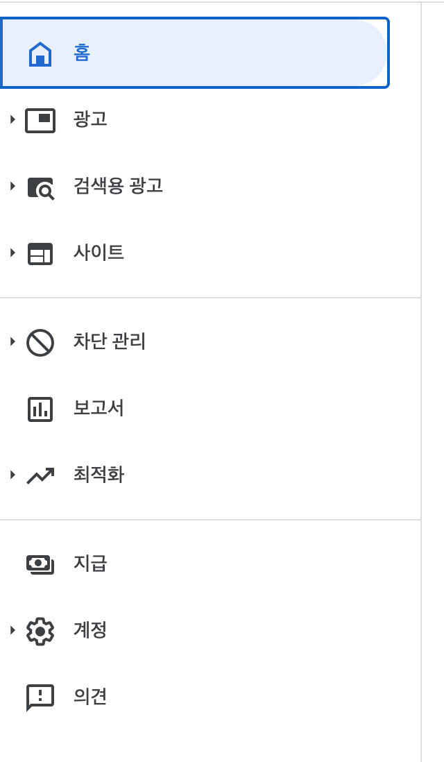 애드센스 웹사이트 좌측