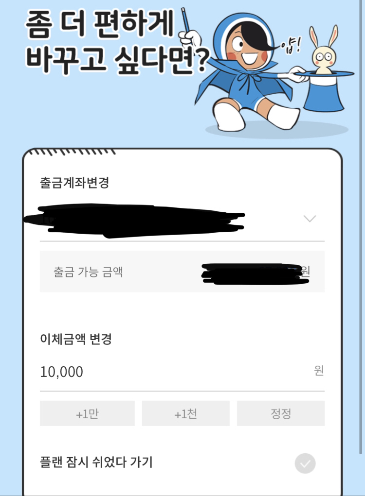 금액과 출금계좌도 변경 가능합니다😁