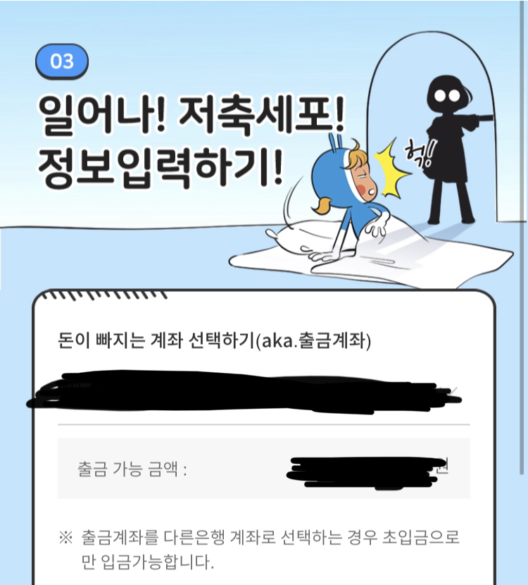 적금 유형과 자동이체 금액을 정합니다