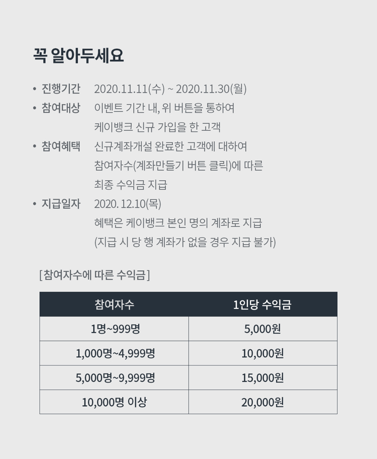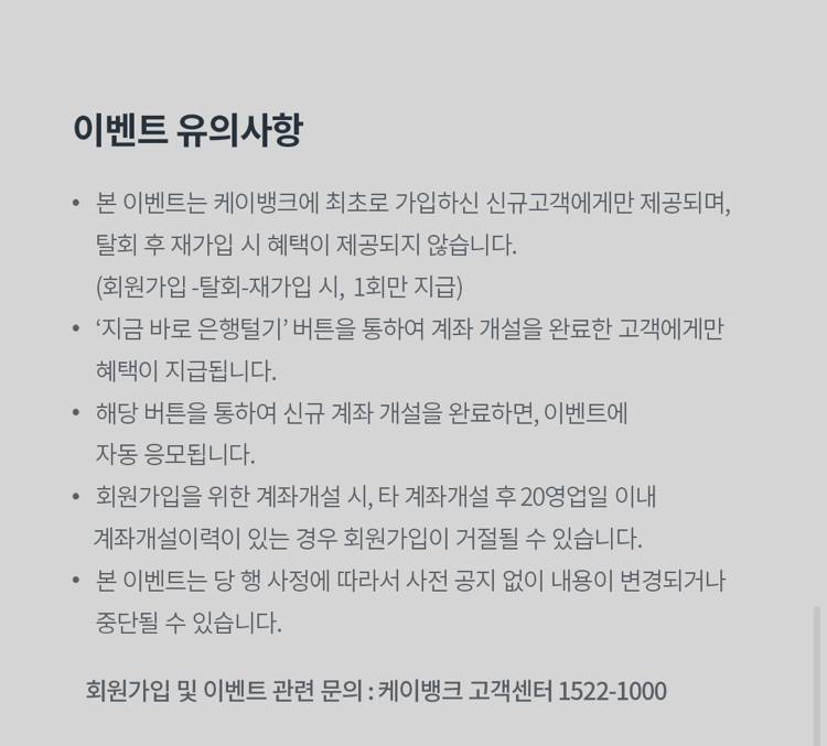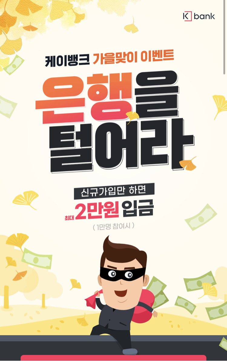 1. 케이뱅크 계좌 개설하면 2만원 입금