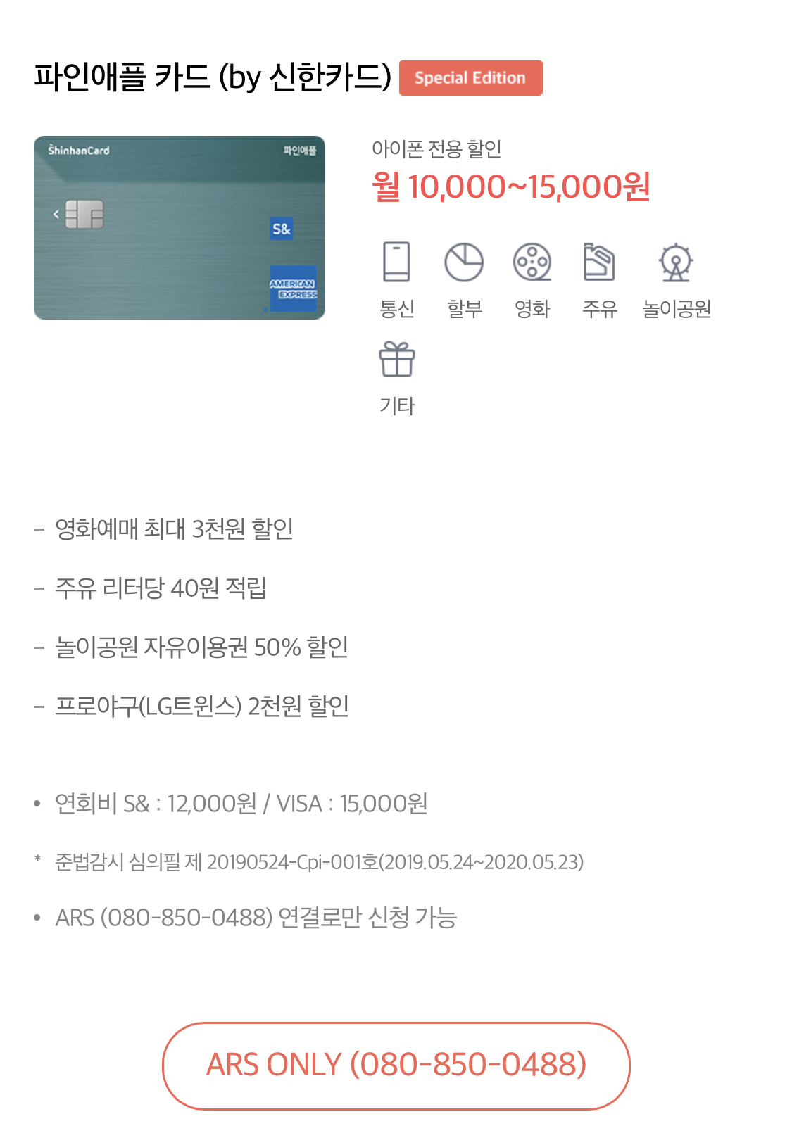 · 연회비: S& 12,000원 / VISA 15,000원
