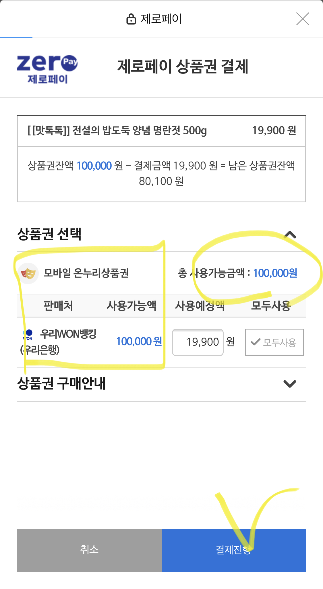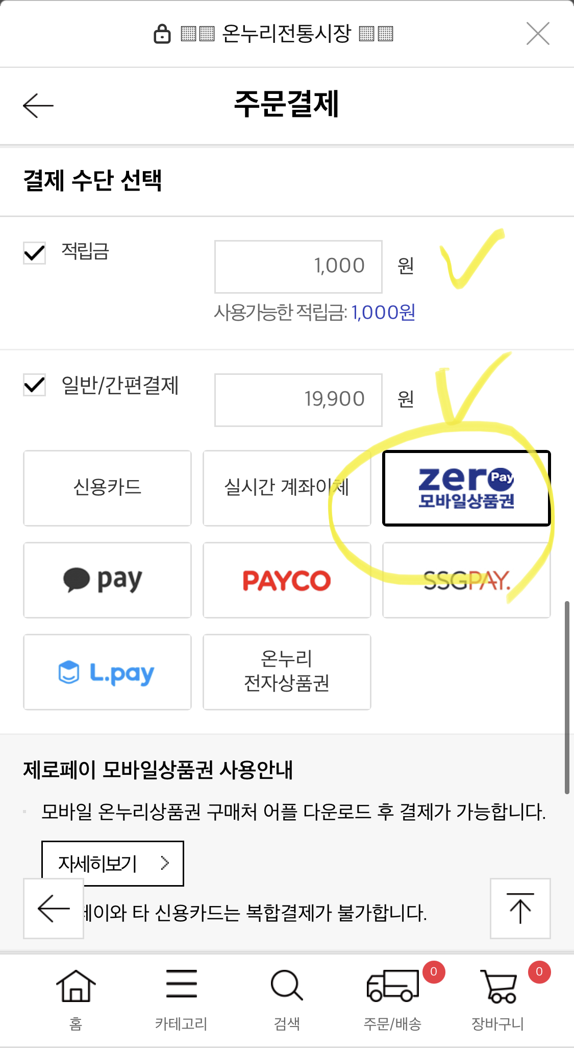3. 결제수단 > '제로페이 모바일상품권' 선택