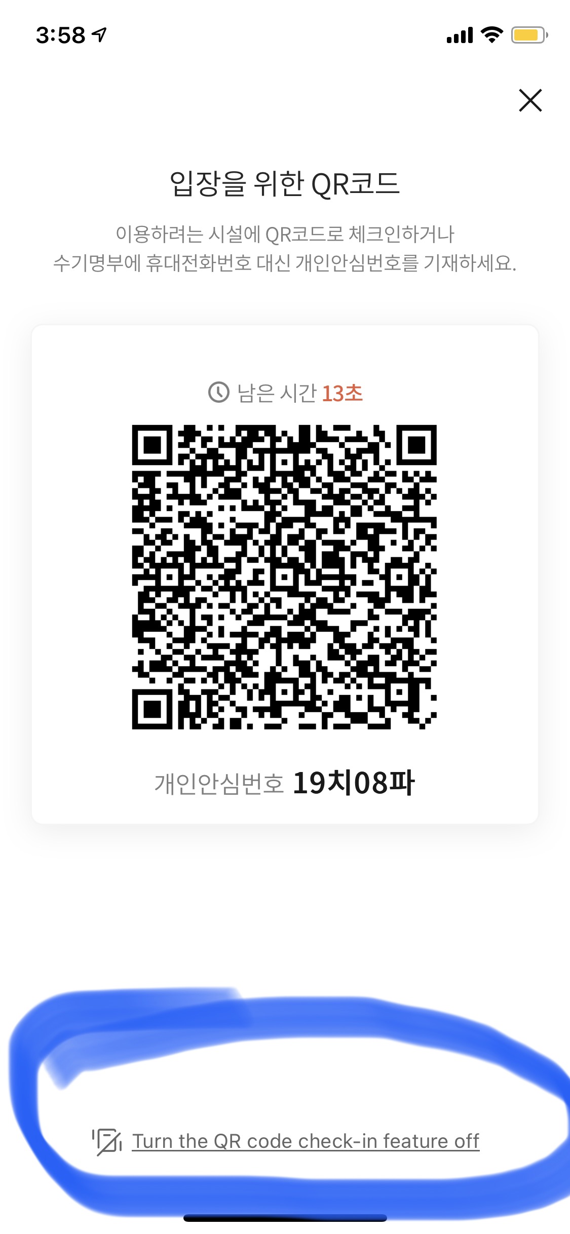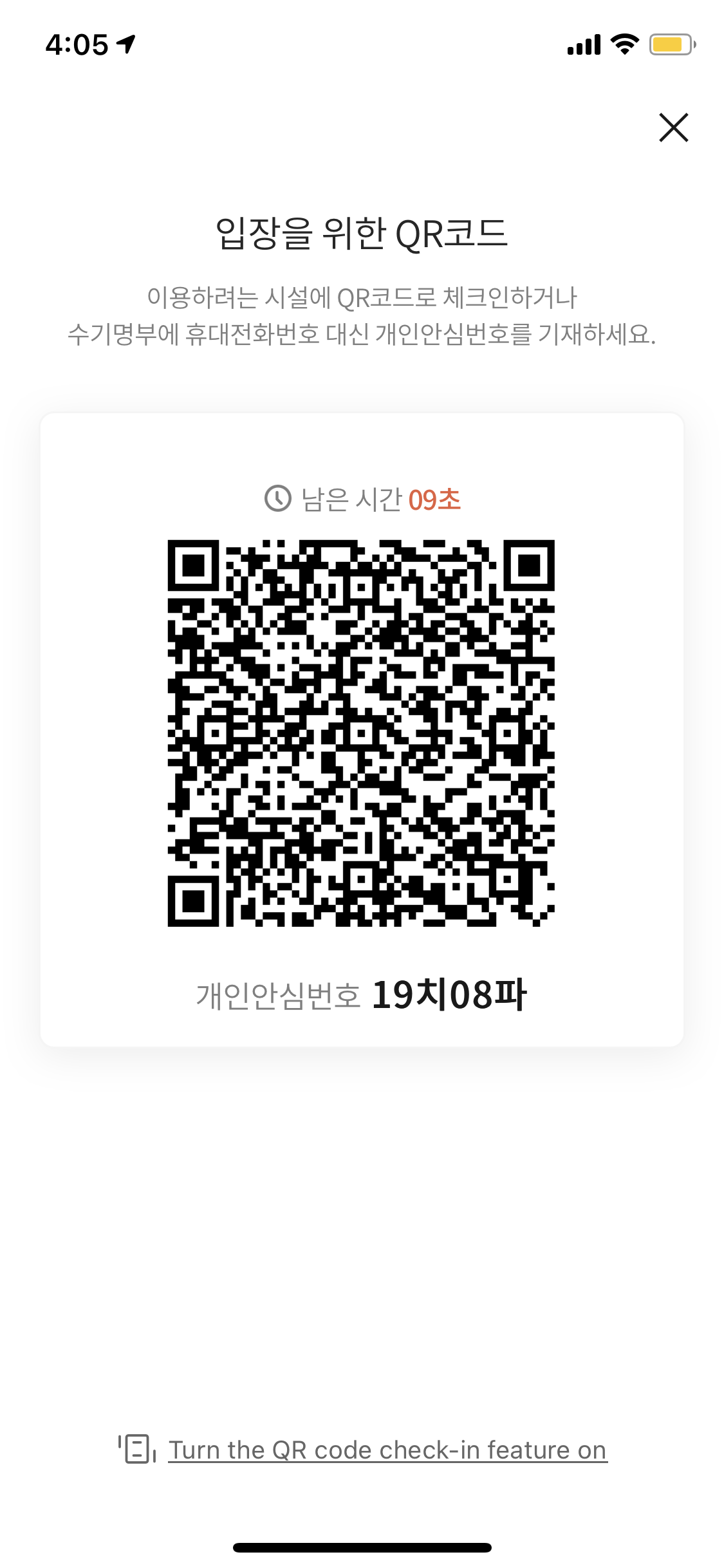 6. QR체크인을 위한 코드가 바로 뜹니다.