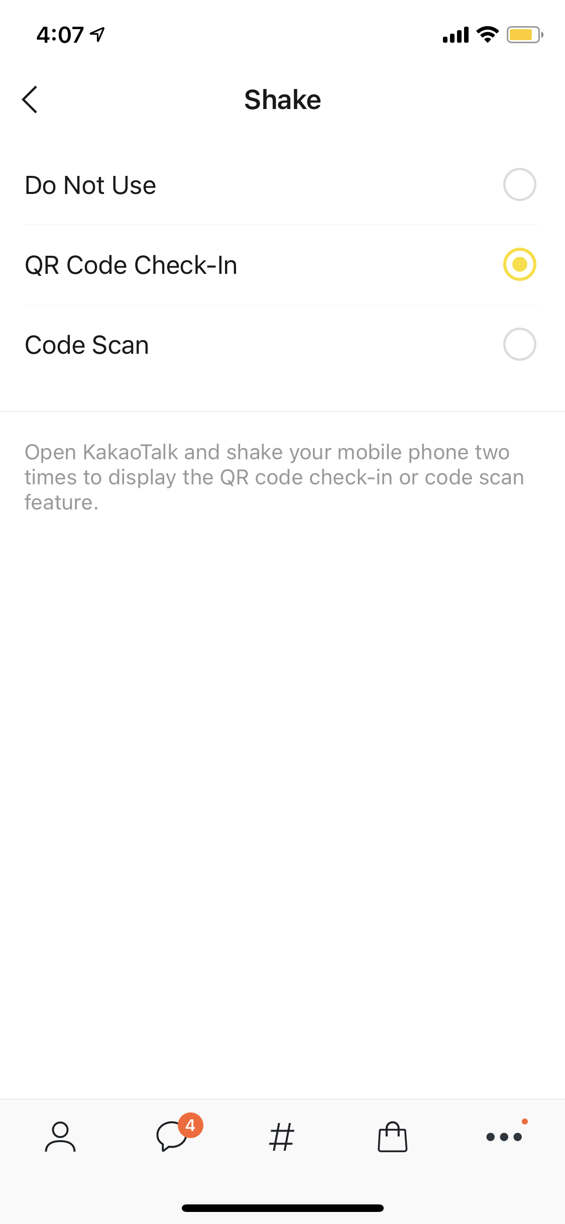 맨 하단의 '쉐이크 기능을 켤까요?'