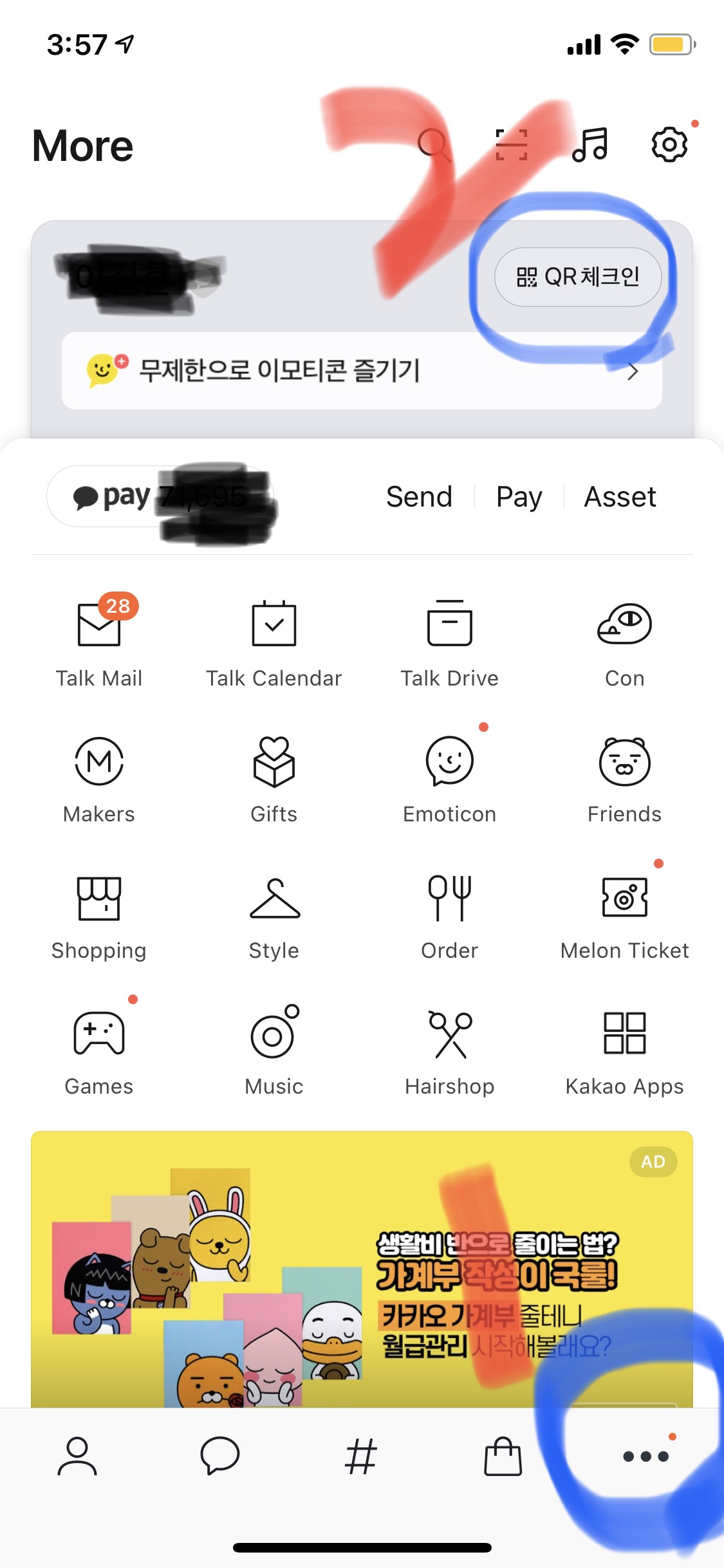 2. 쩜쩜쩜을 눌러 QR 체크인 클릭!