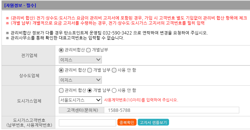 · 도시가스: 개별납부