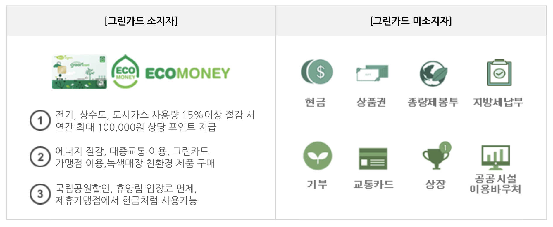 그린카드 포인트 등으로 다양합니다.
