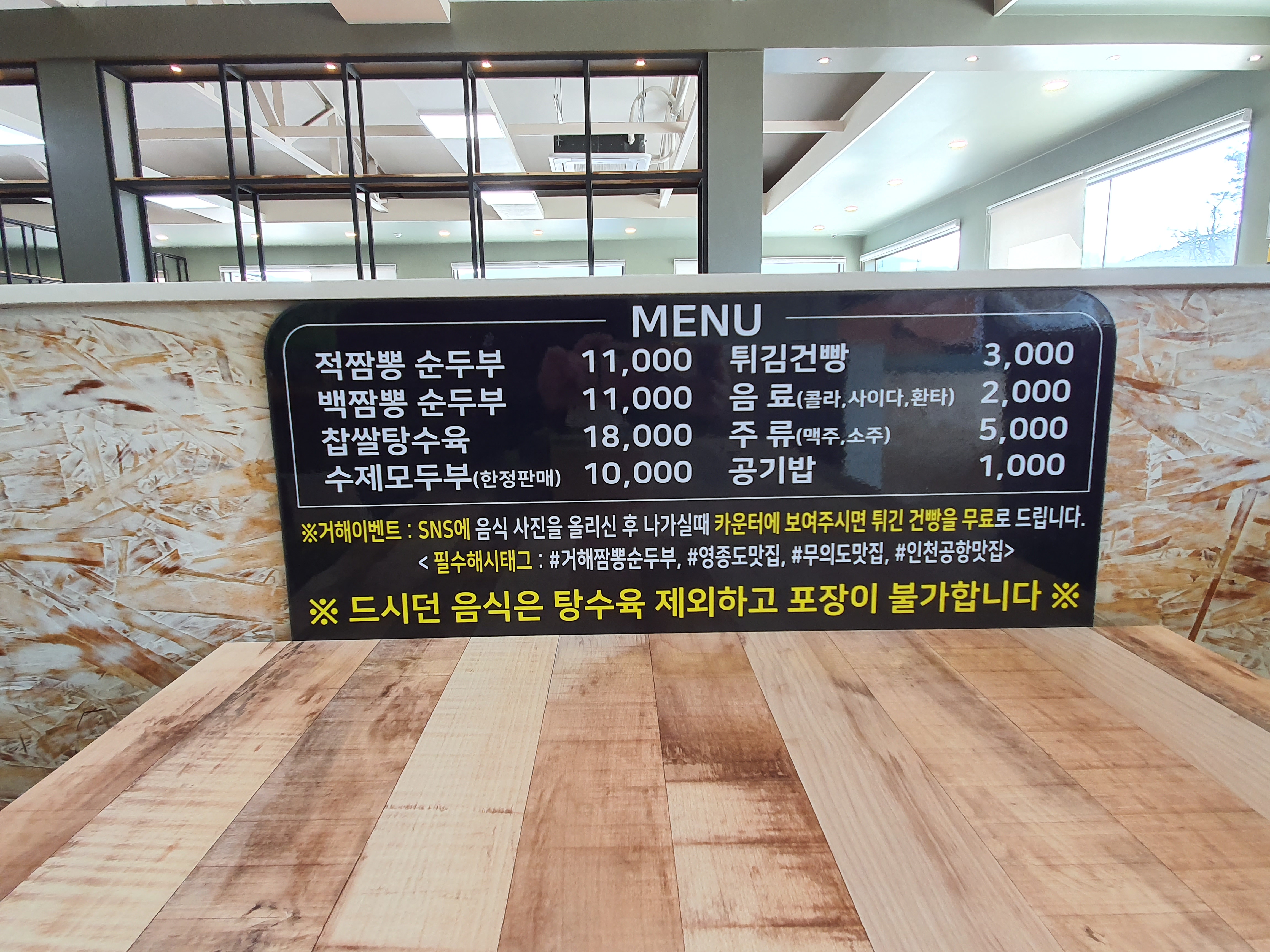 영종도 무의도 거해짬뽕순두부 입니다. ^^ 인천 중구 대무의로 281 평일 10:00 - 20:30 (화요일 휴무) 주말 09:30 ~ 20:30 032-747-2276