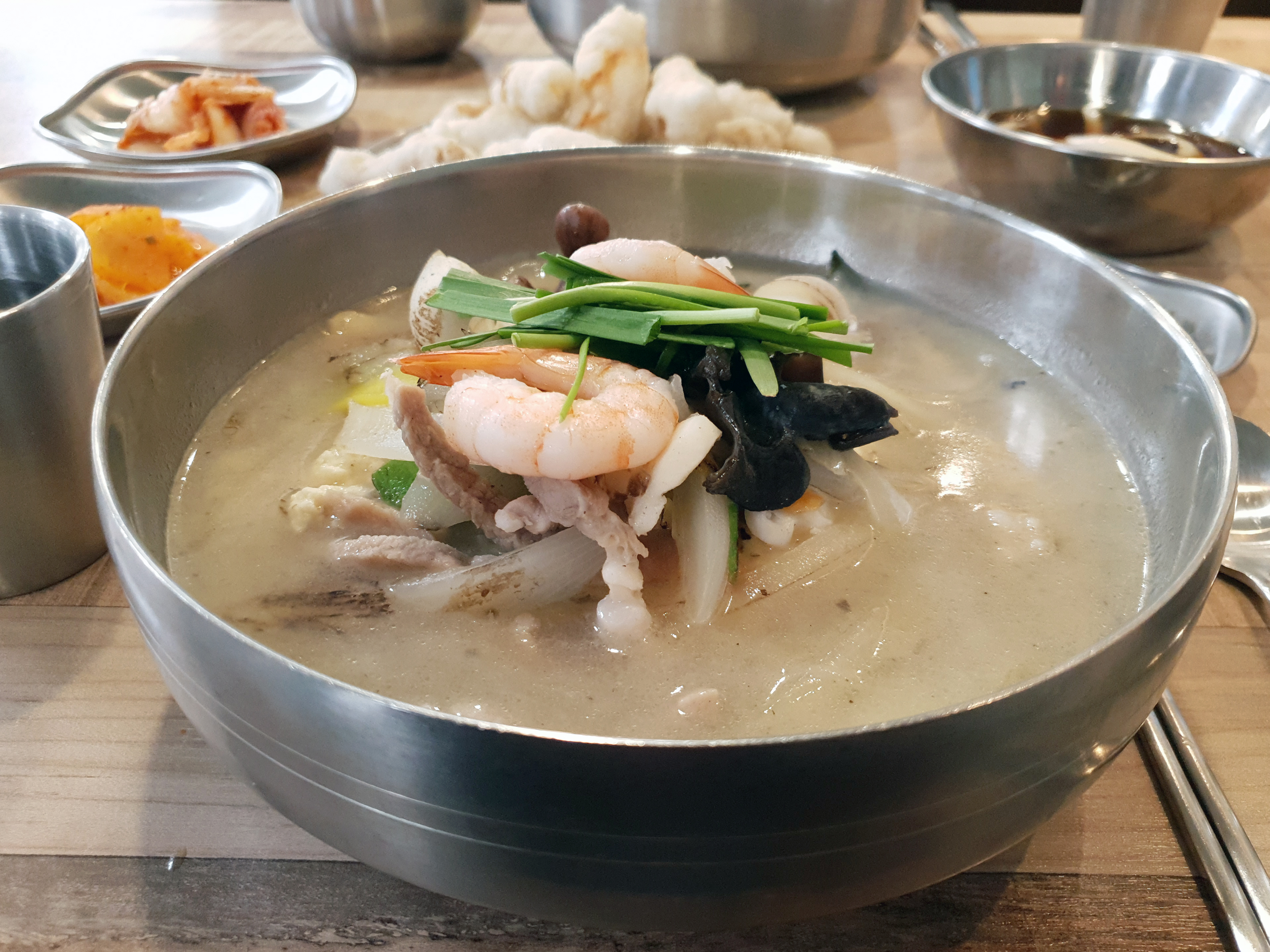 풍부한 해산물과 돼지고기를 넣어