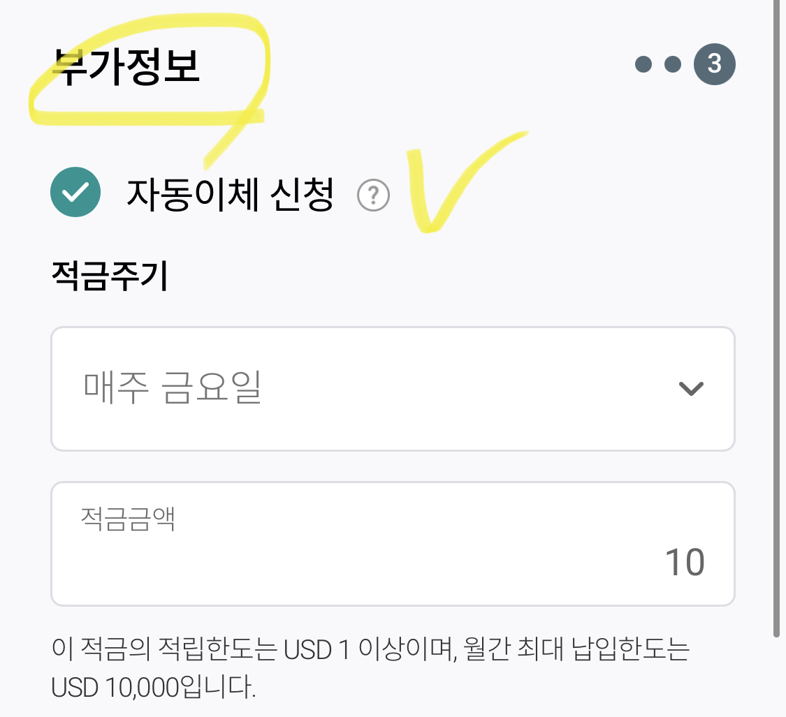 3. 1달러~ 10,000달러까지(매월) 자유 납입 가능