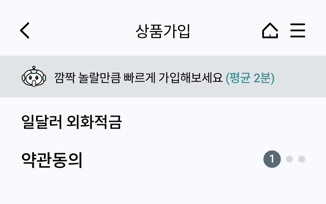 1. 하나 원큐 앱 > 전체 메뉴 > 상품 가입 > 외화 클릭🙌