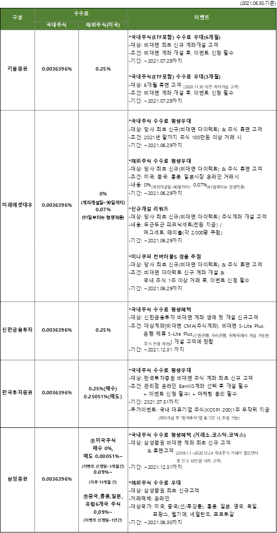 증권사별 수수료와 이벤트 자료