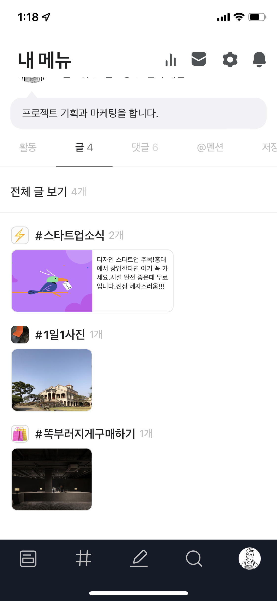 마이페이지 상단의