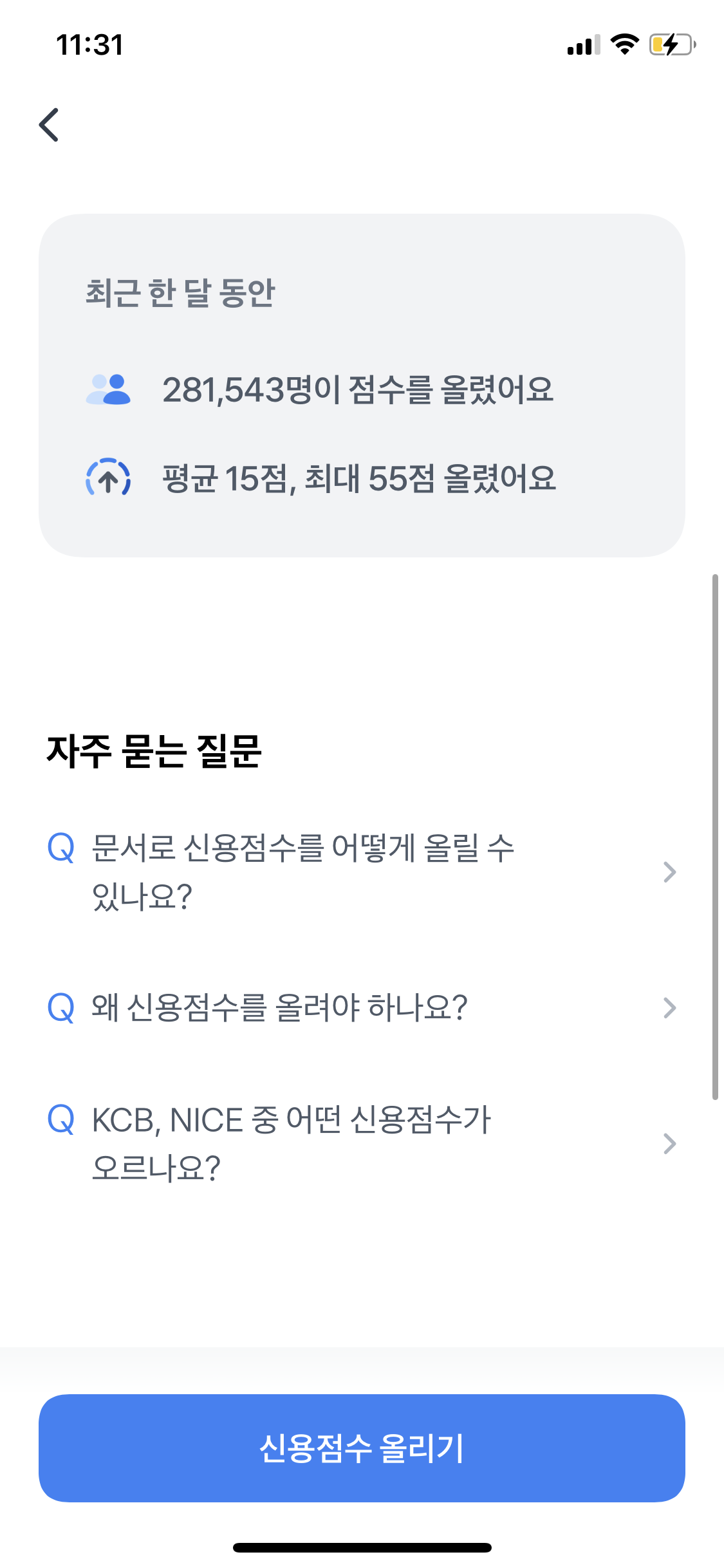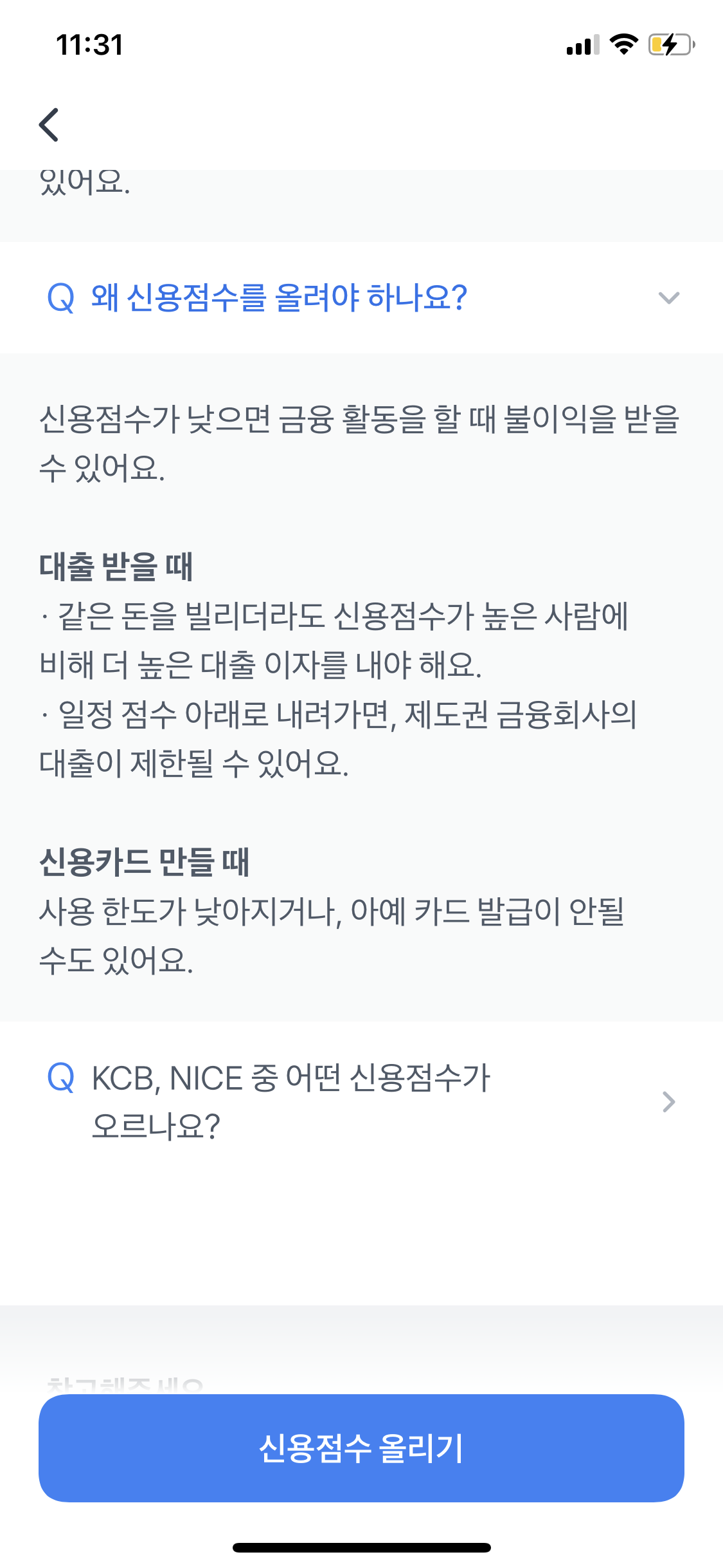 하단의 바로 <신용점수 올리기>를 클릭하면