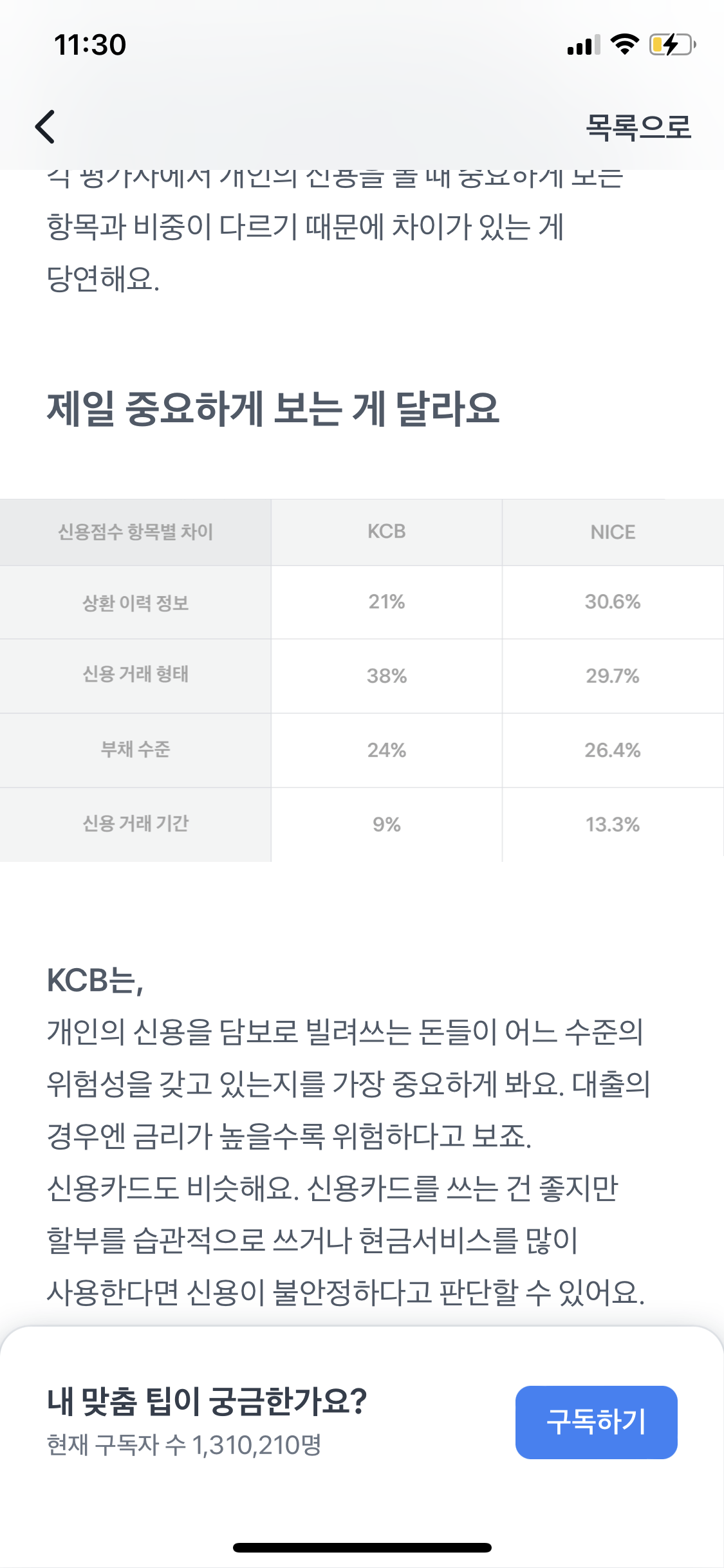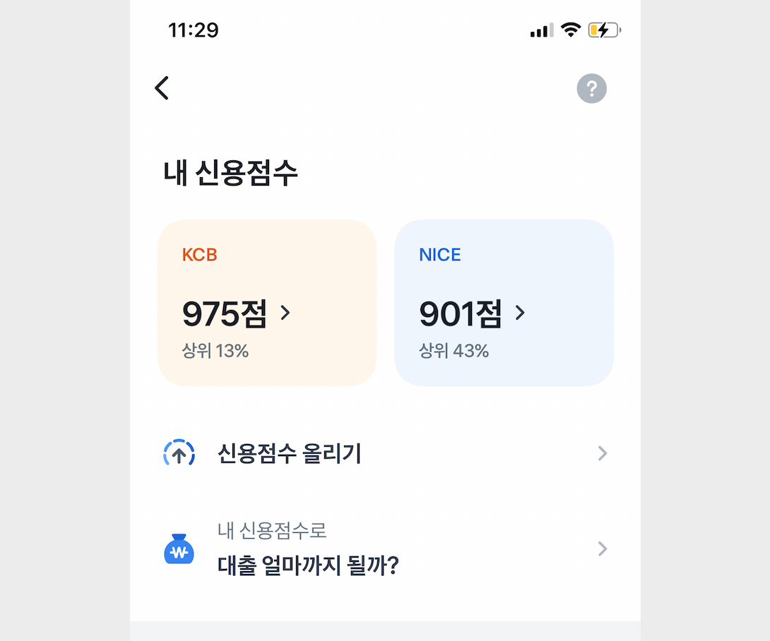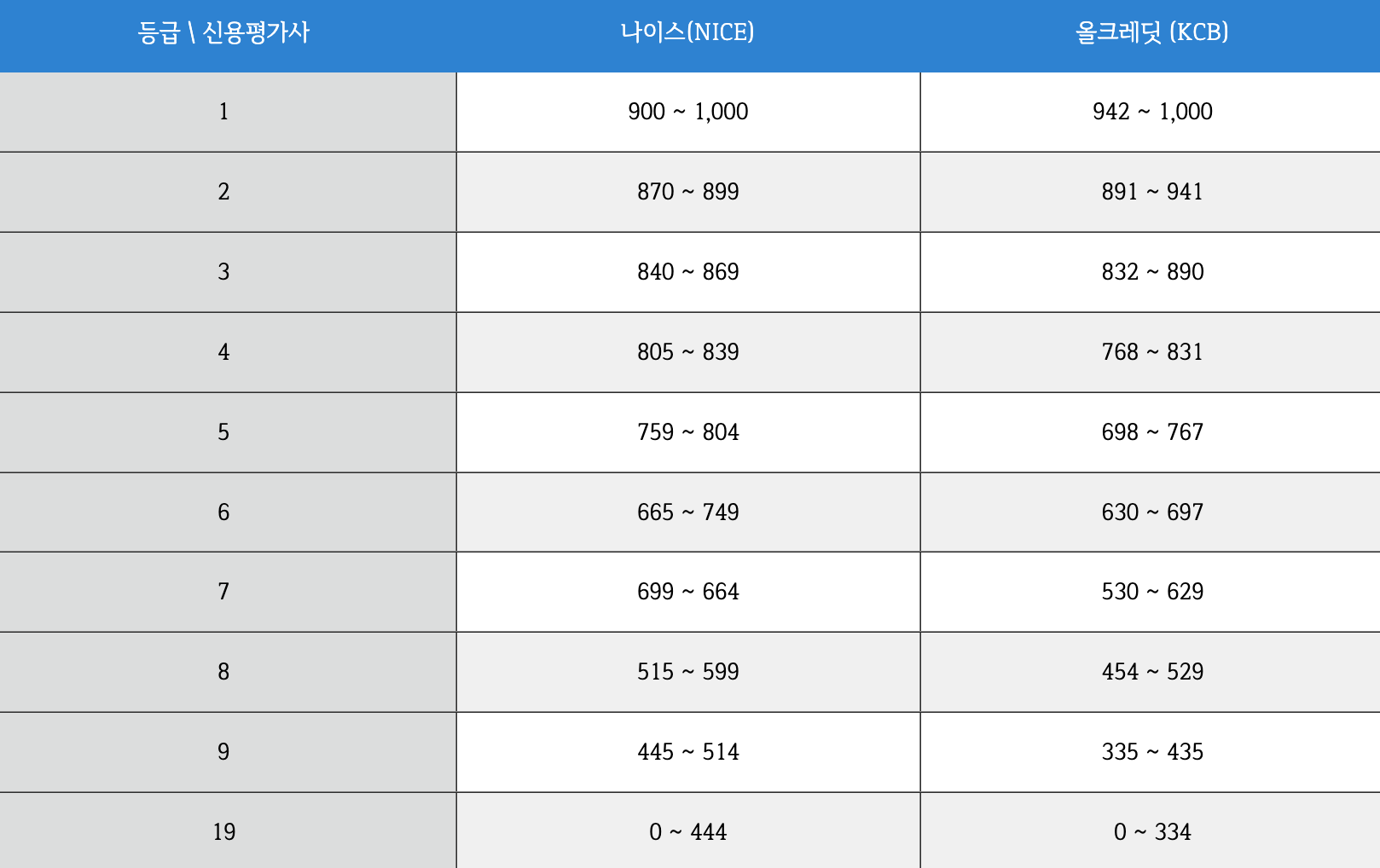 KCB와 NICE 2개 신용평가사 점수가 있고