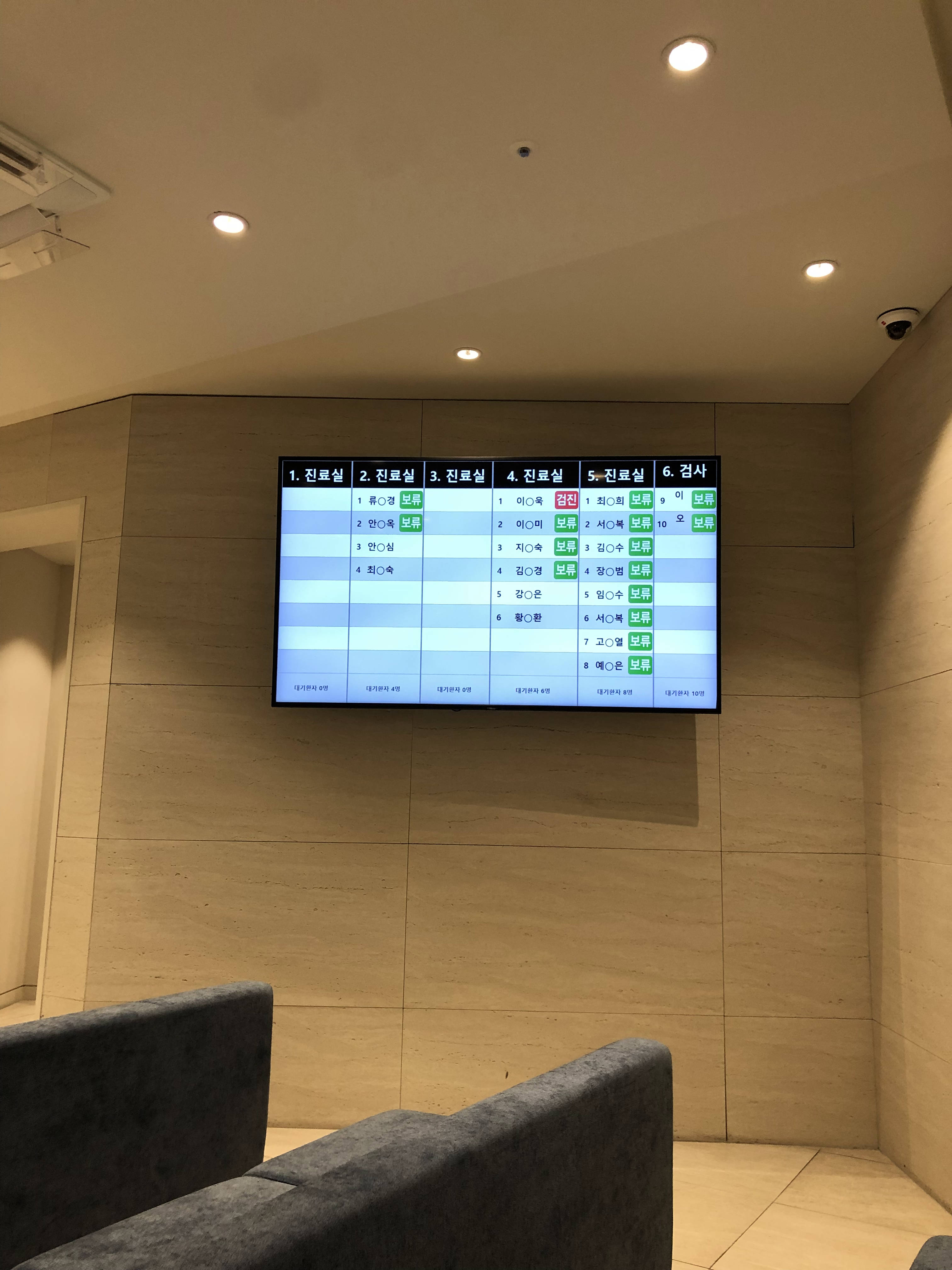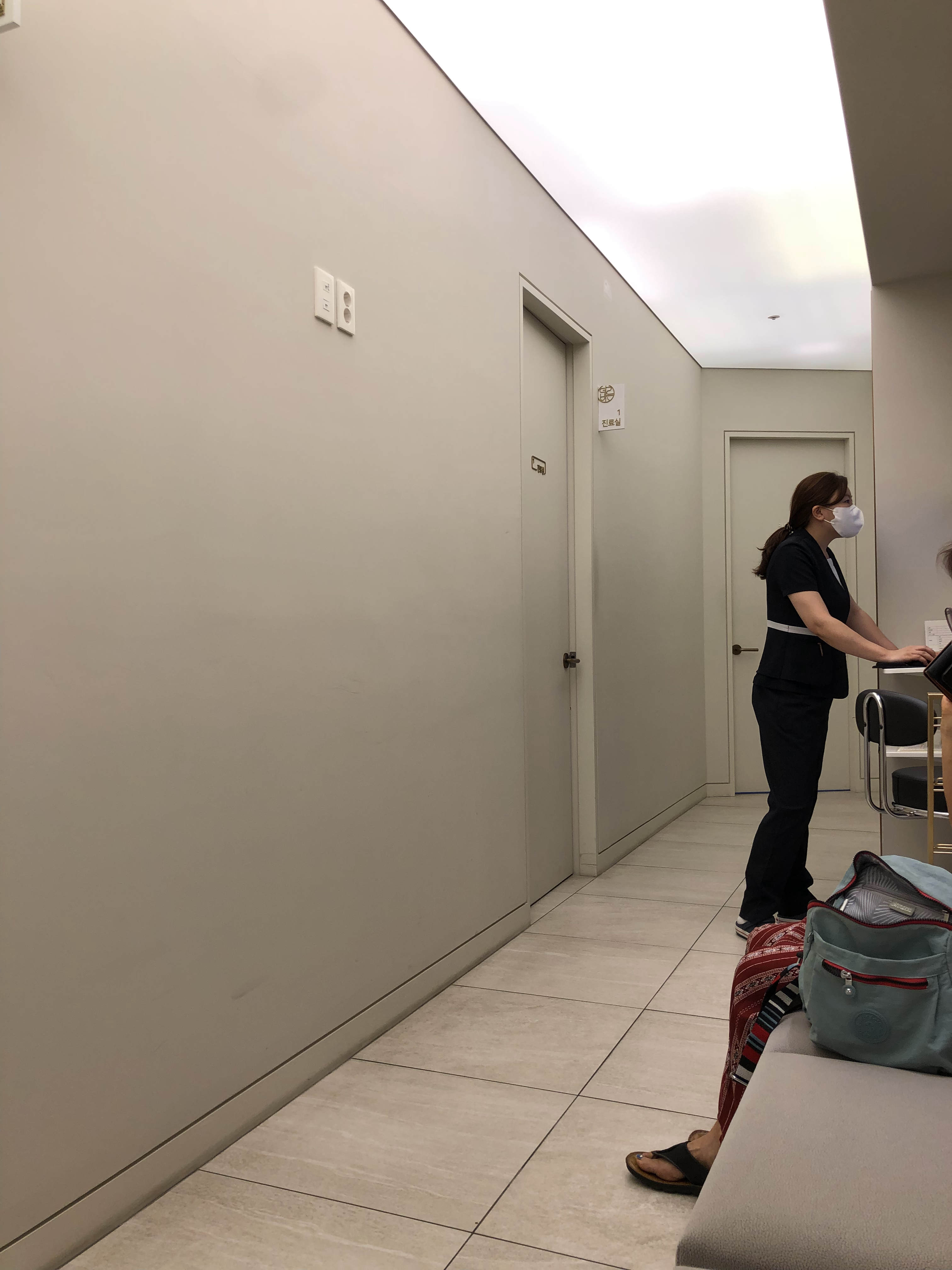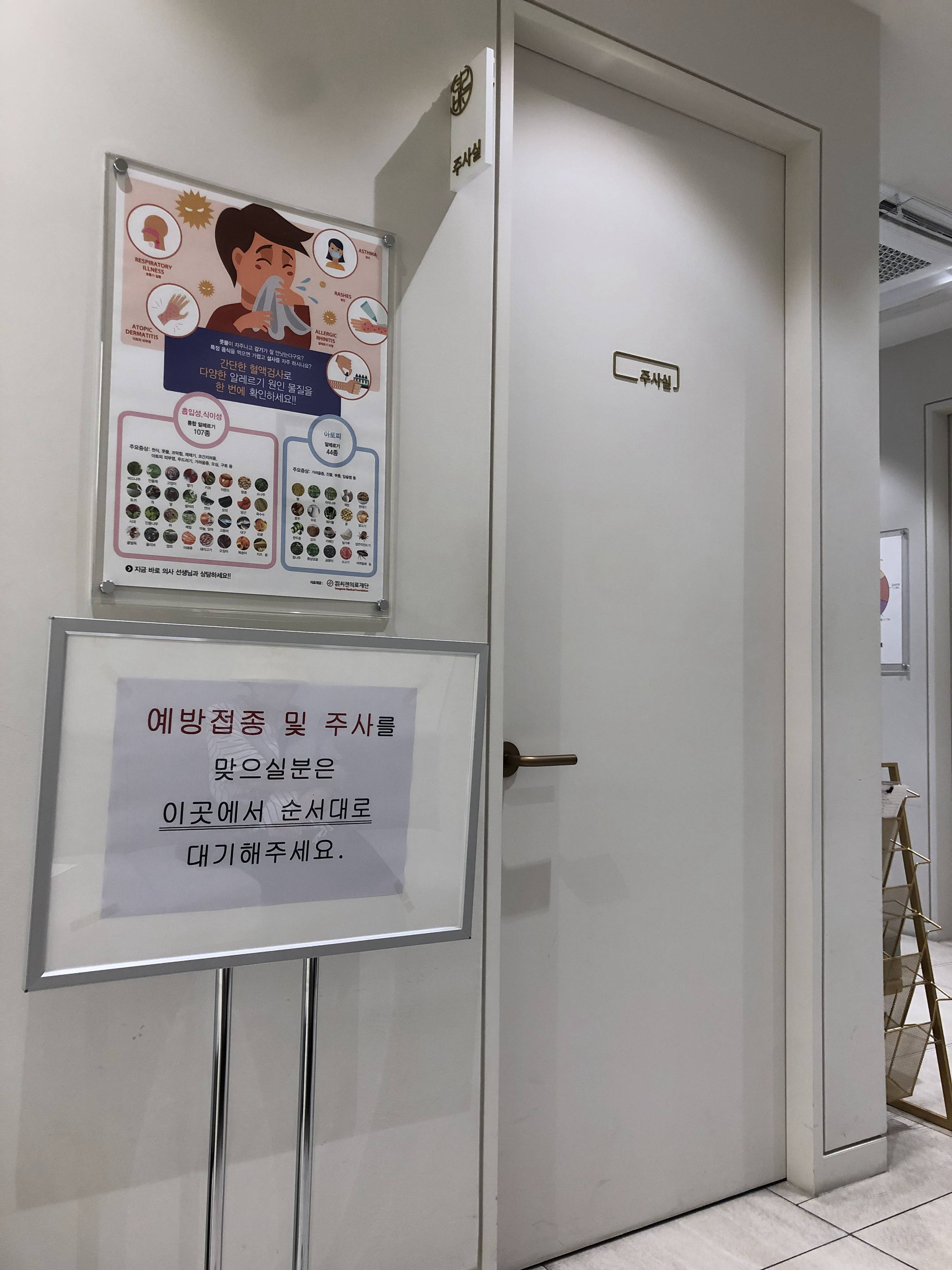 주사실 앞에서 기다리니