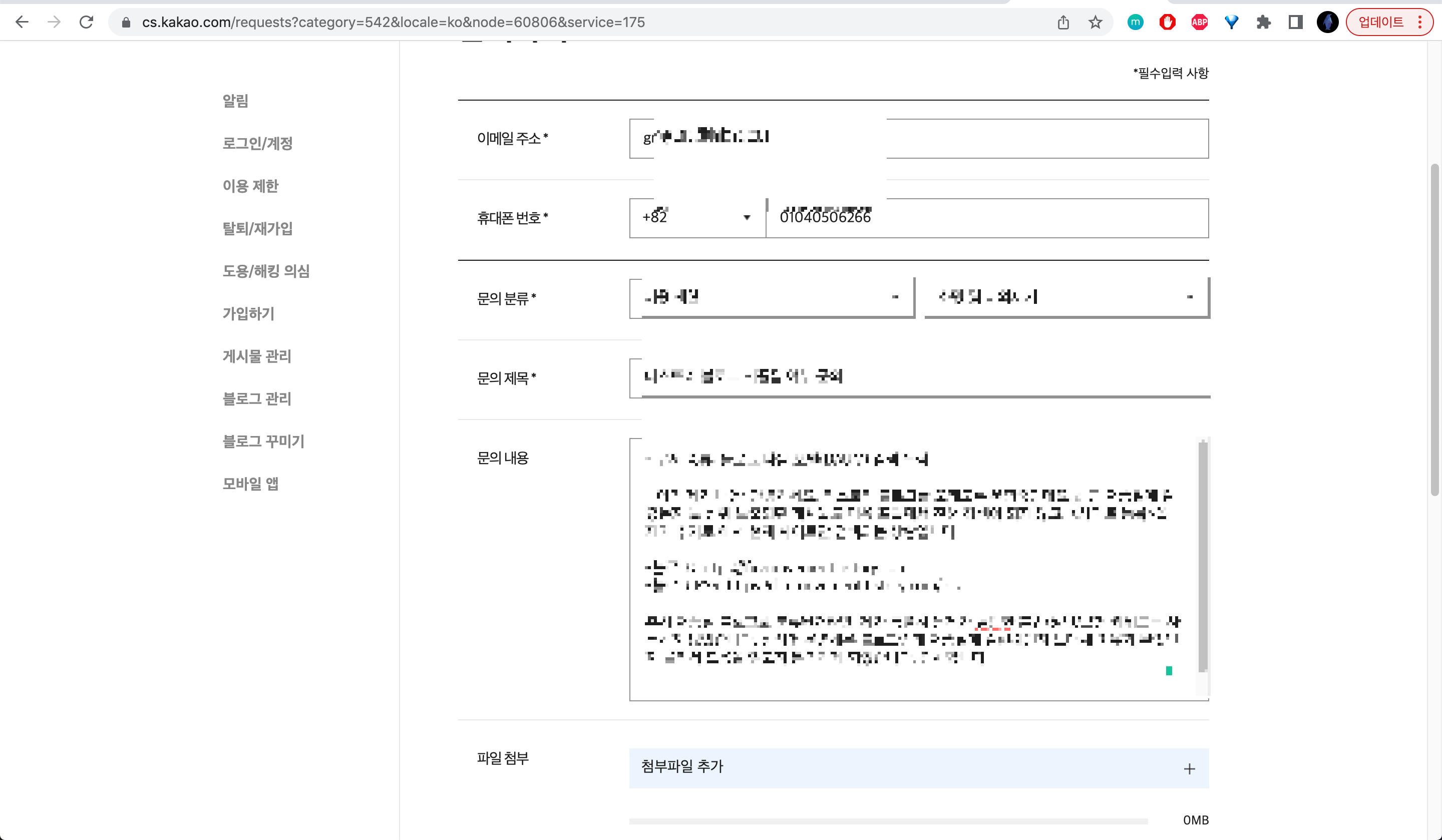 <문의 분류>를 적절하게 설정해줍니다.