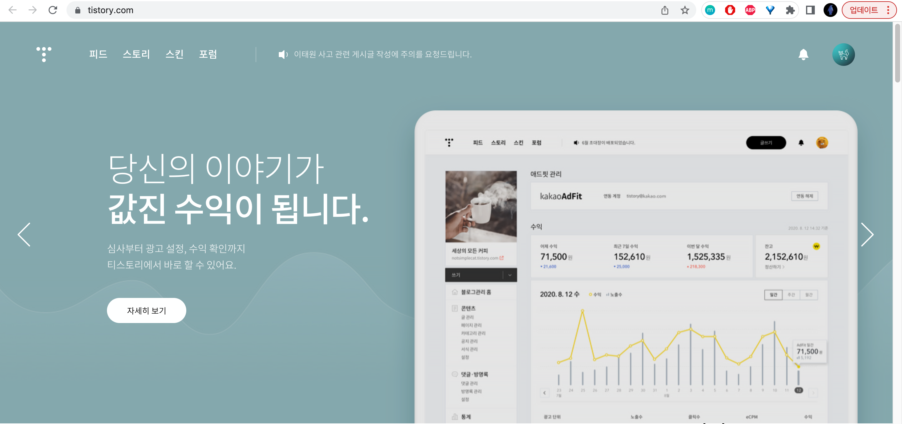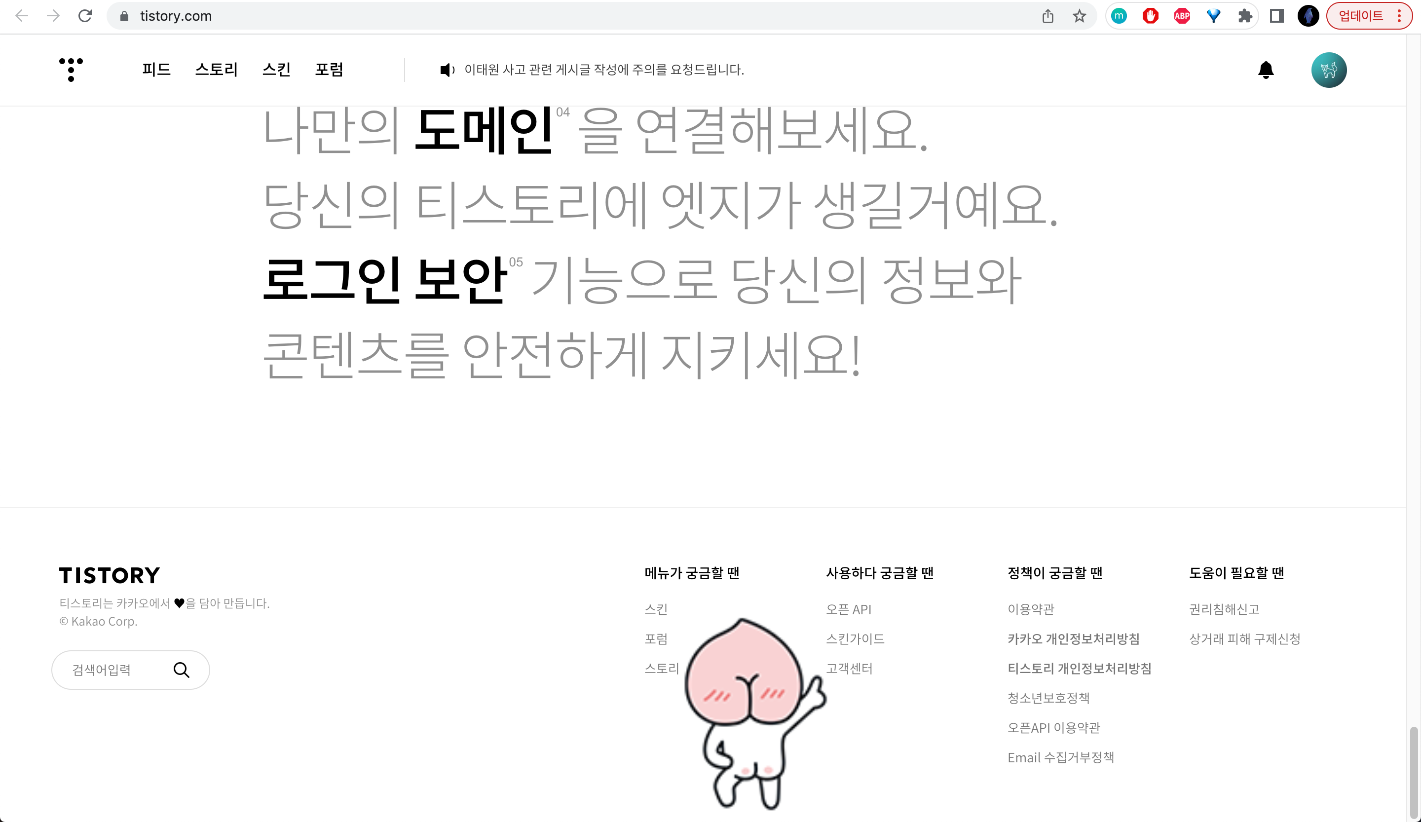 일단 티스토리 메인 홈페이지에 가서