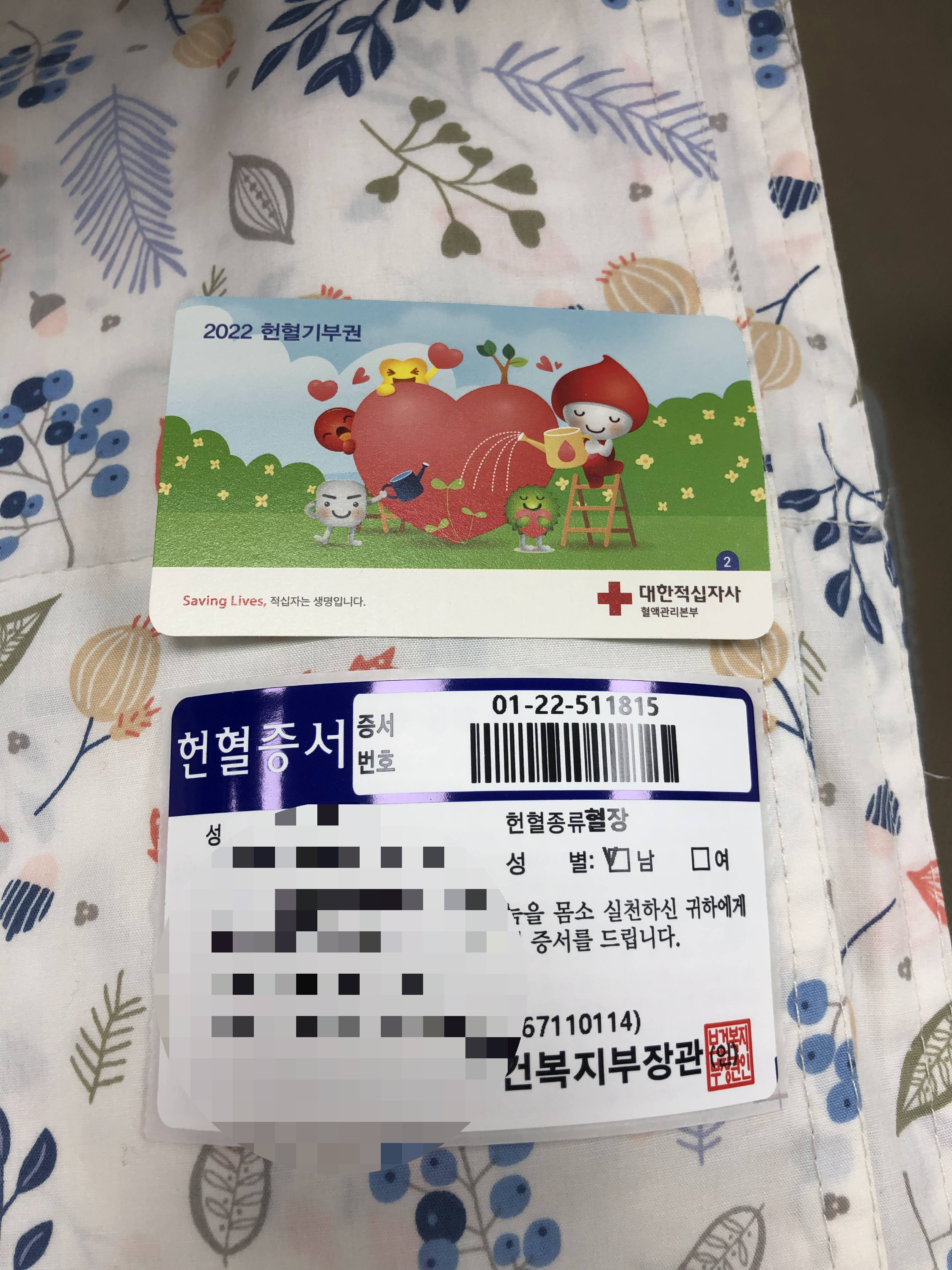 잘 챙기셔서 나중에 혈액이 급히 필요할 때