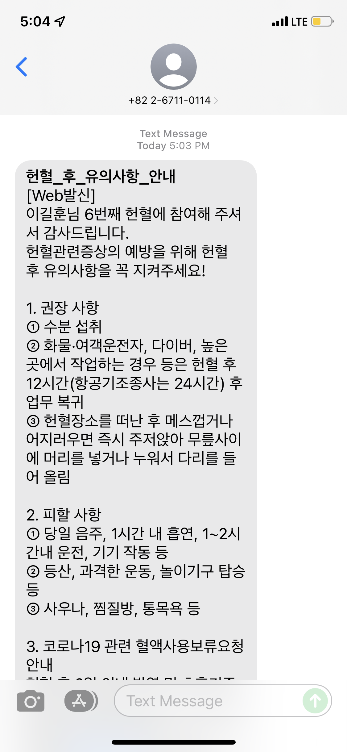 전혈은 불가능했고, 혈장만 가능했습니다.