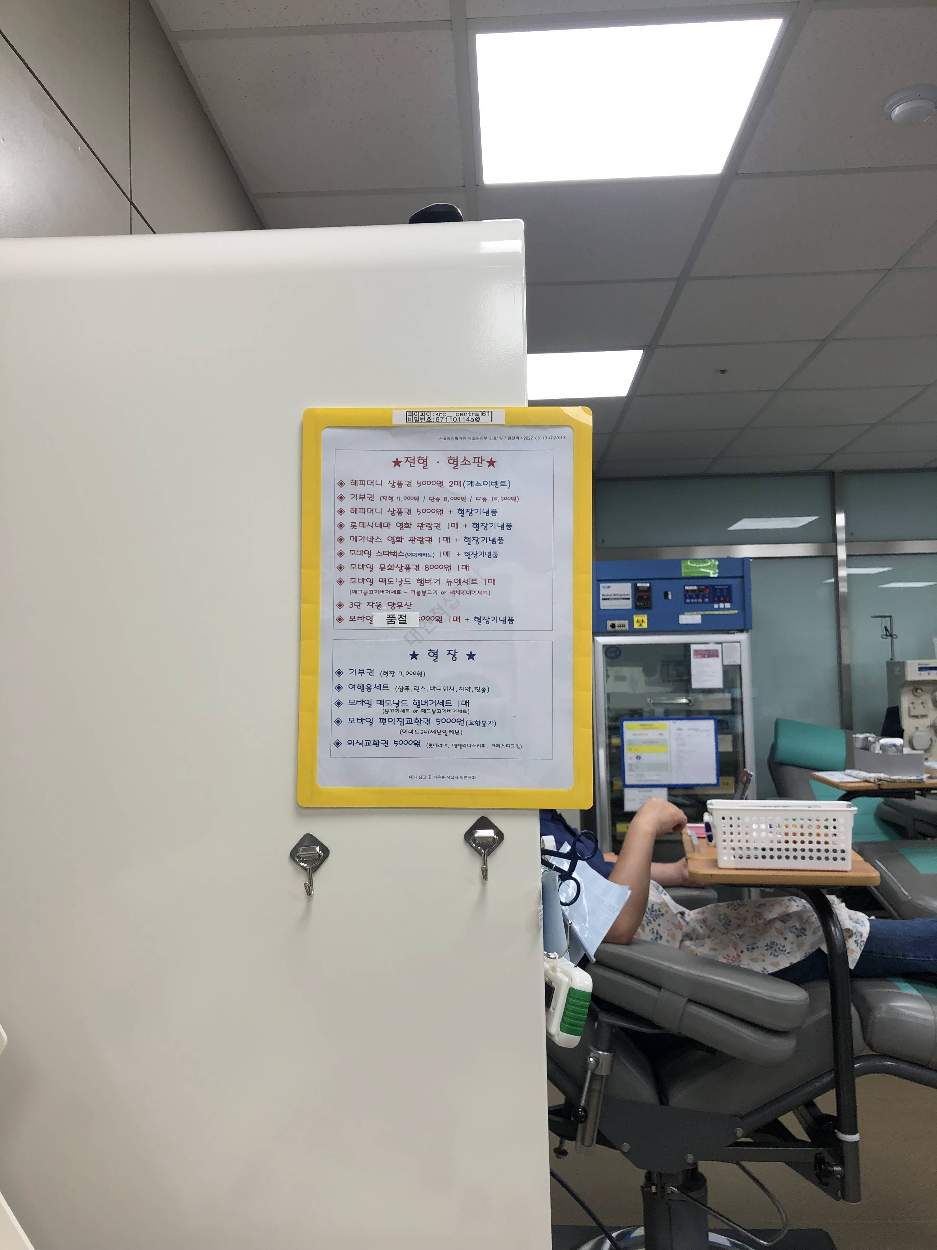 *혈장: 성분채혈기를 이용하여 혈장만을 채혈하고, 나머지 성분은 헌혈자에게 되돌려 주는 헌혈(500mL 정도 채혈)