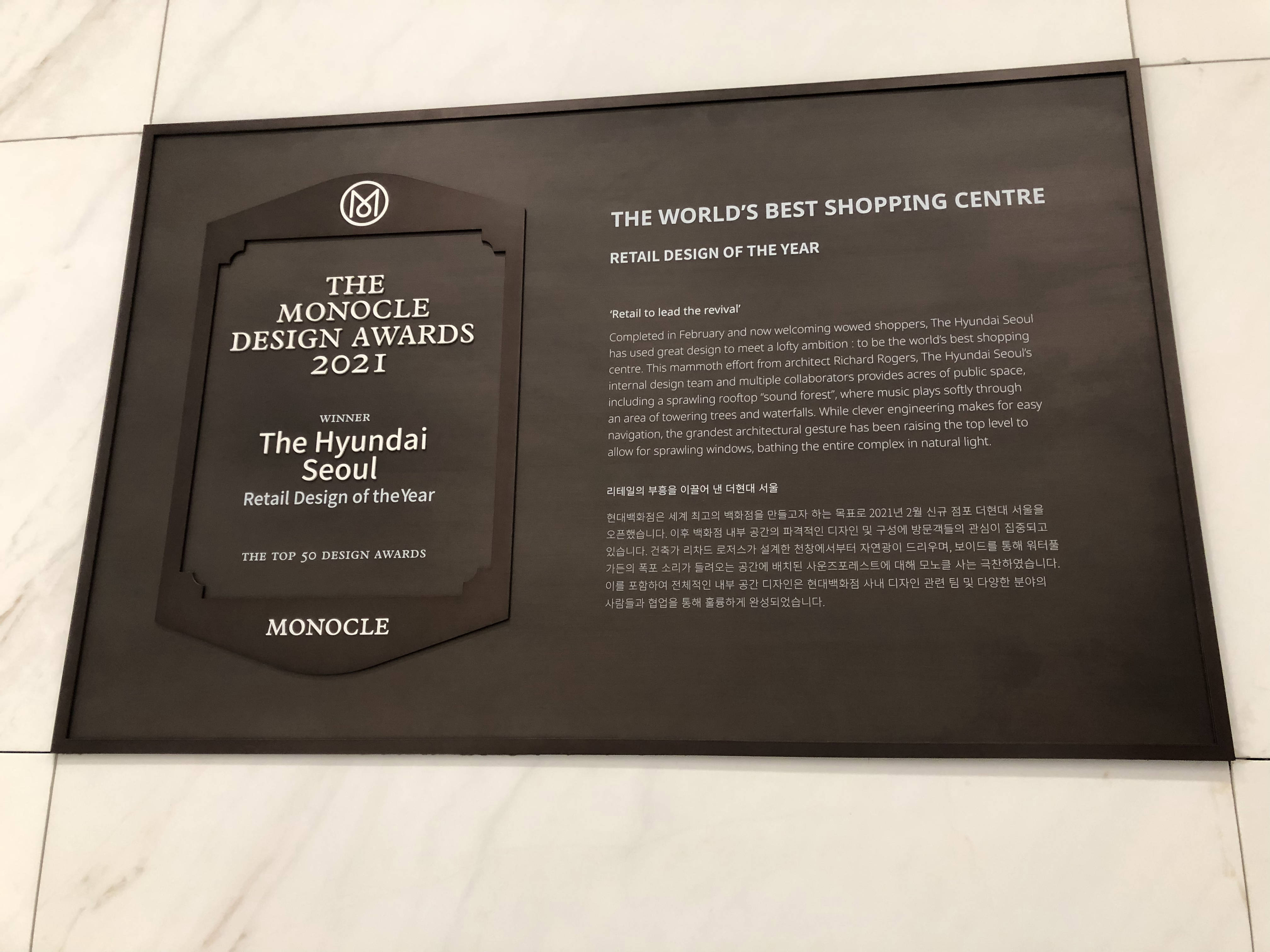 세계 최고 디자인 쇼핑센터 수상했네요.