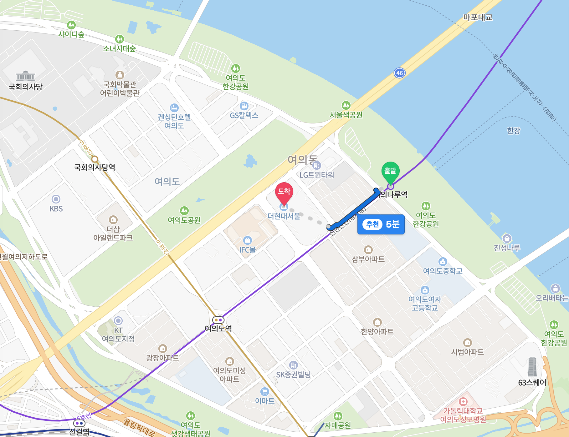 '여의도공원 앞 노상주차장'을 이용하세요.