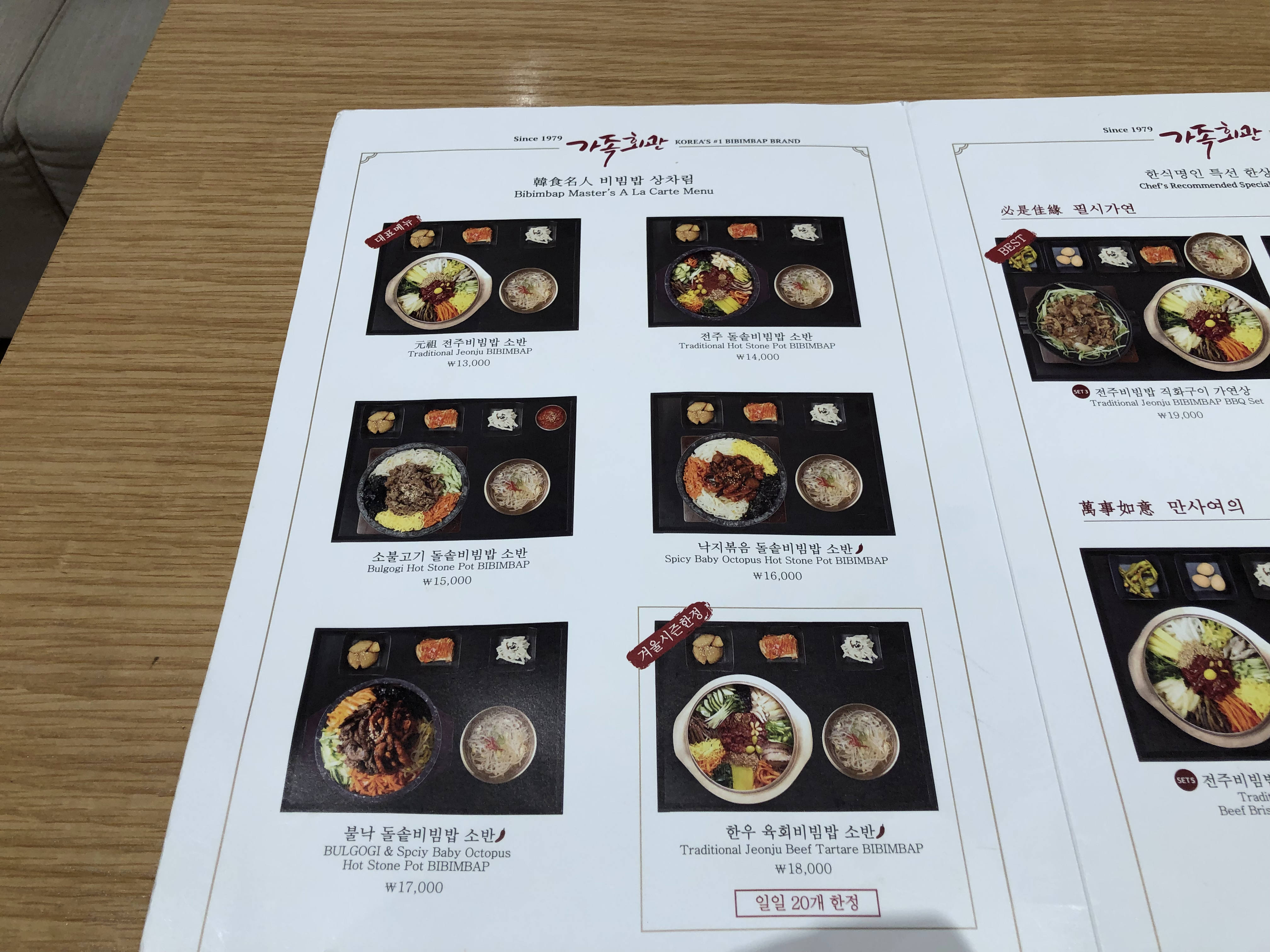전주비빔밥과 돌솥비빔밥 차돌된장찌개