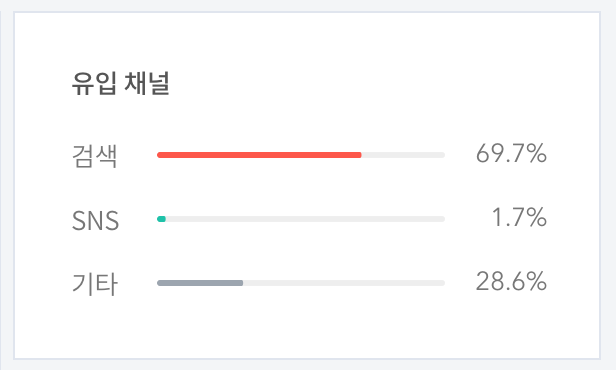 유입채널은 '검색'이 압도적이네요.