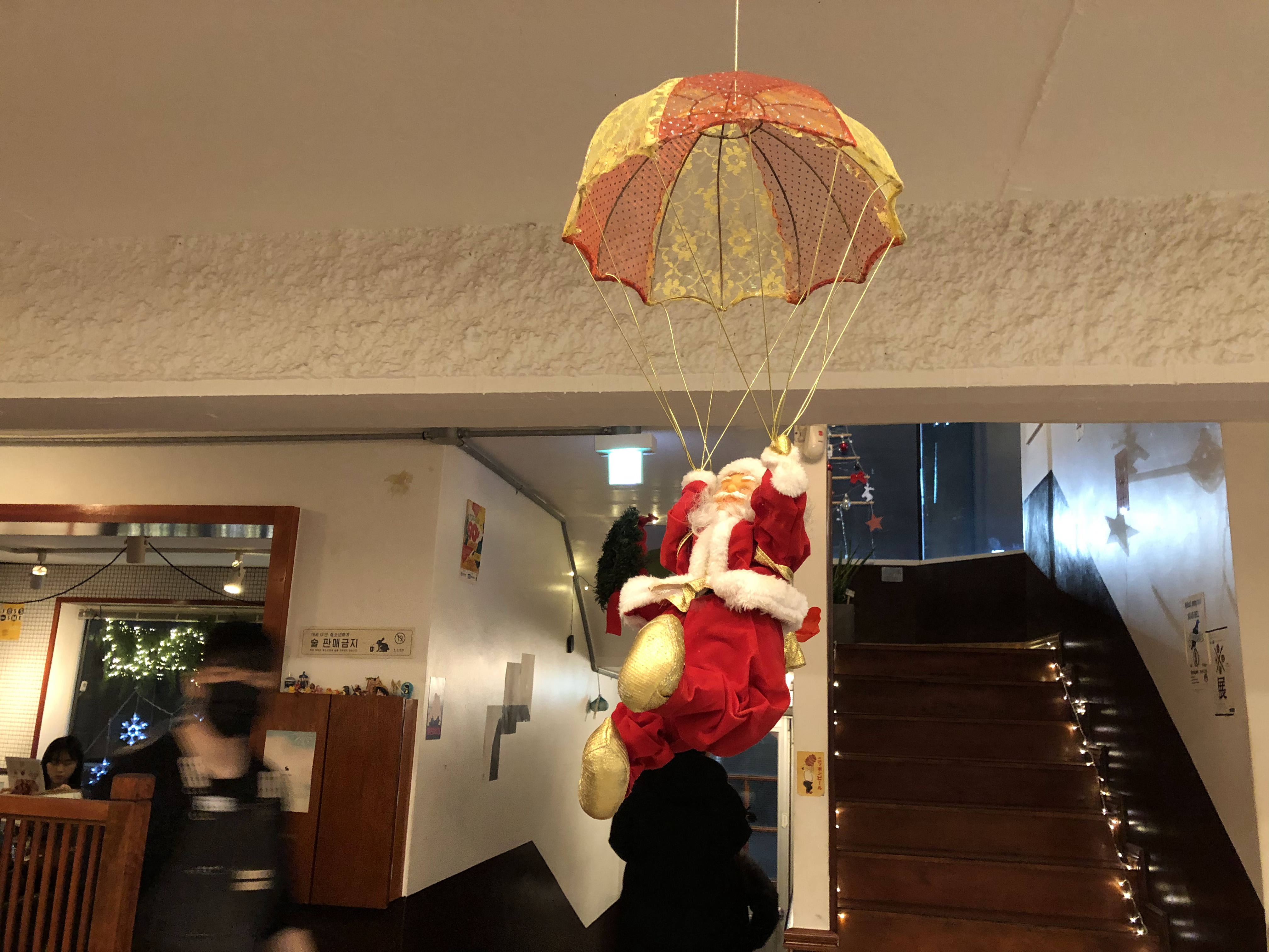 낙하산 탄 산타할아버지가