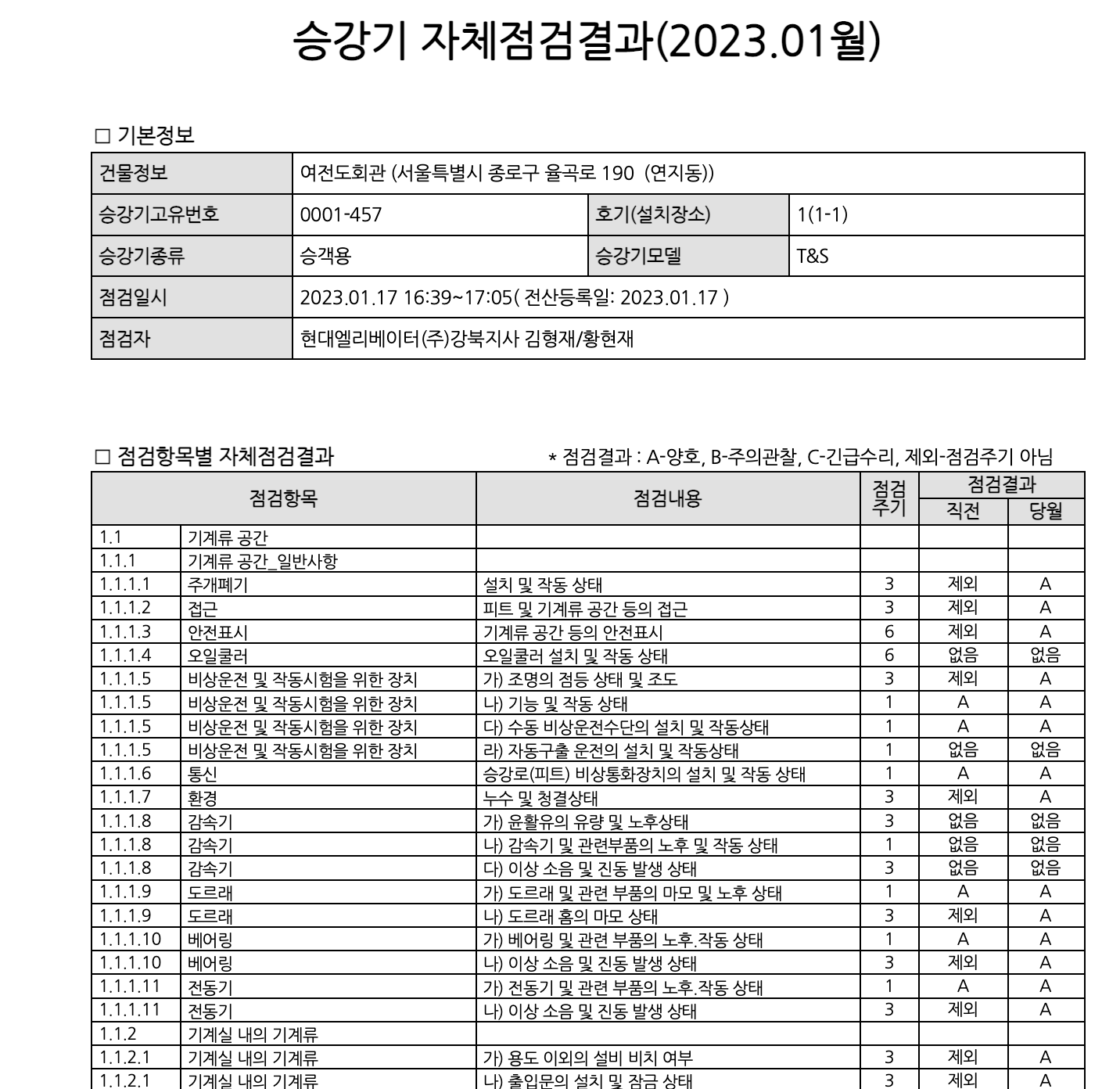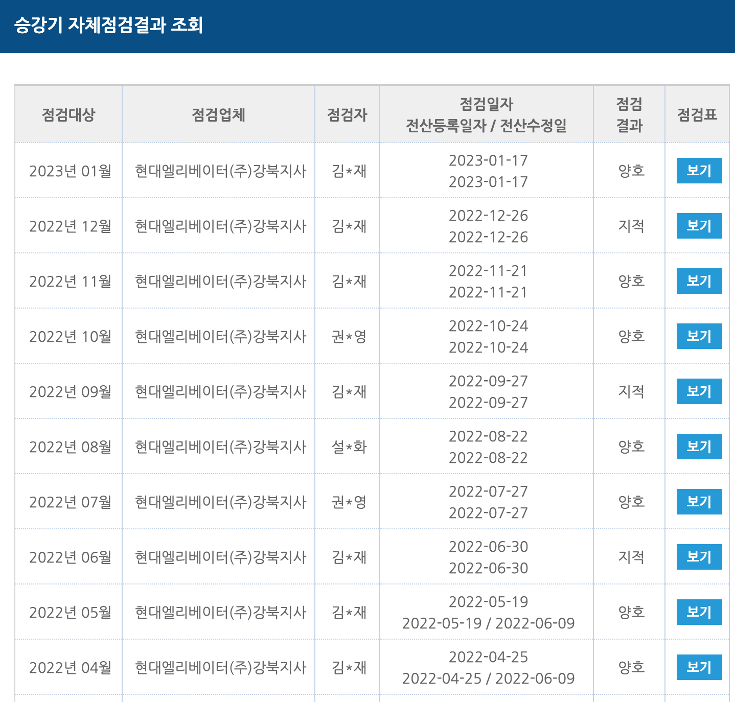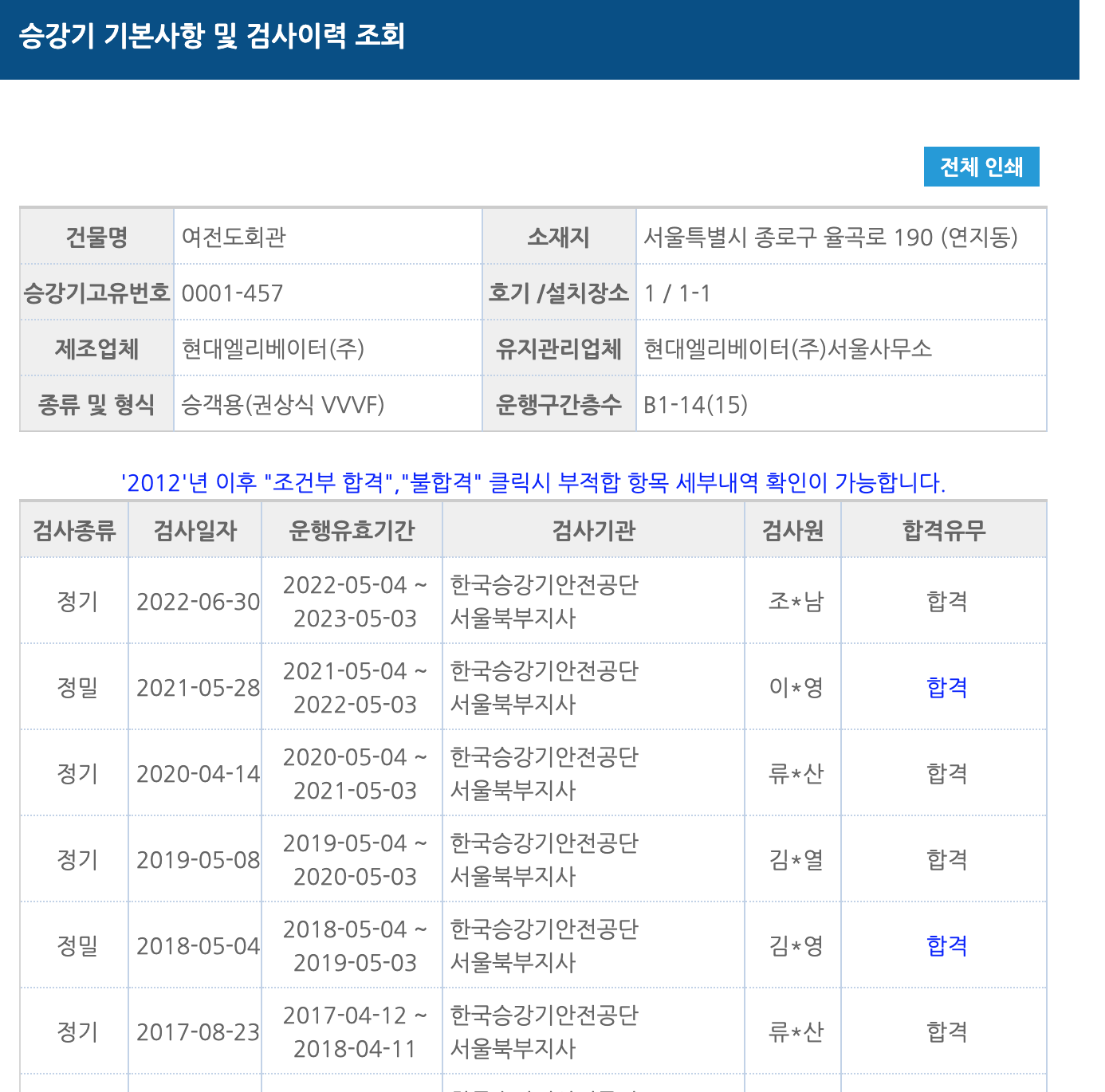 조*남 기사님이 점검을 했고 합격했네요."