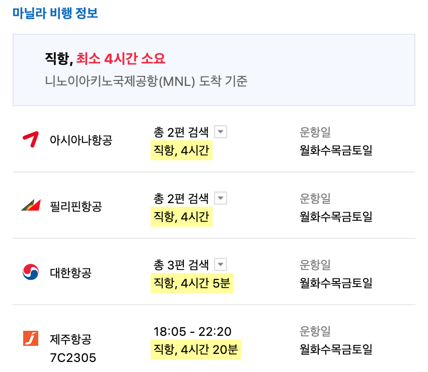 필리핀은 우리나라에서 비행기 직항으로