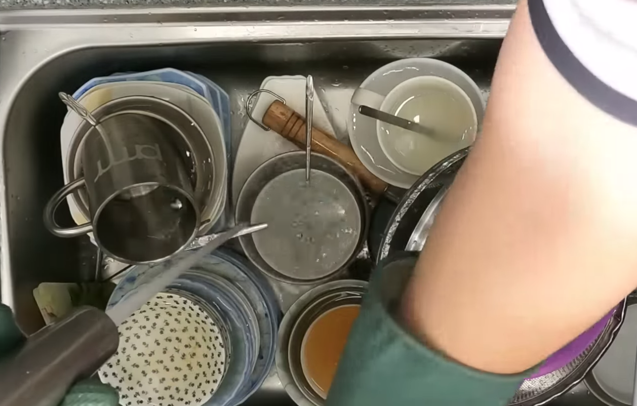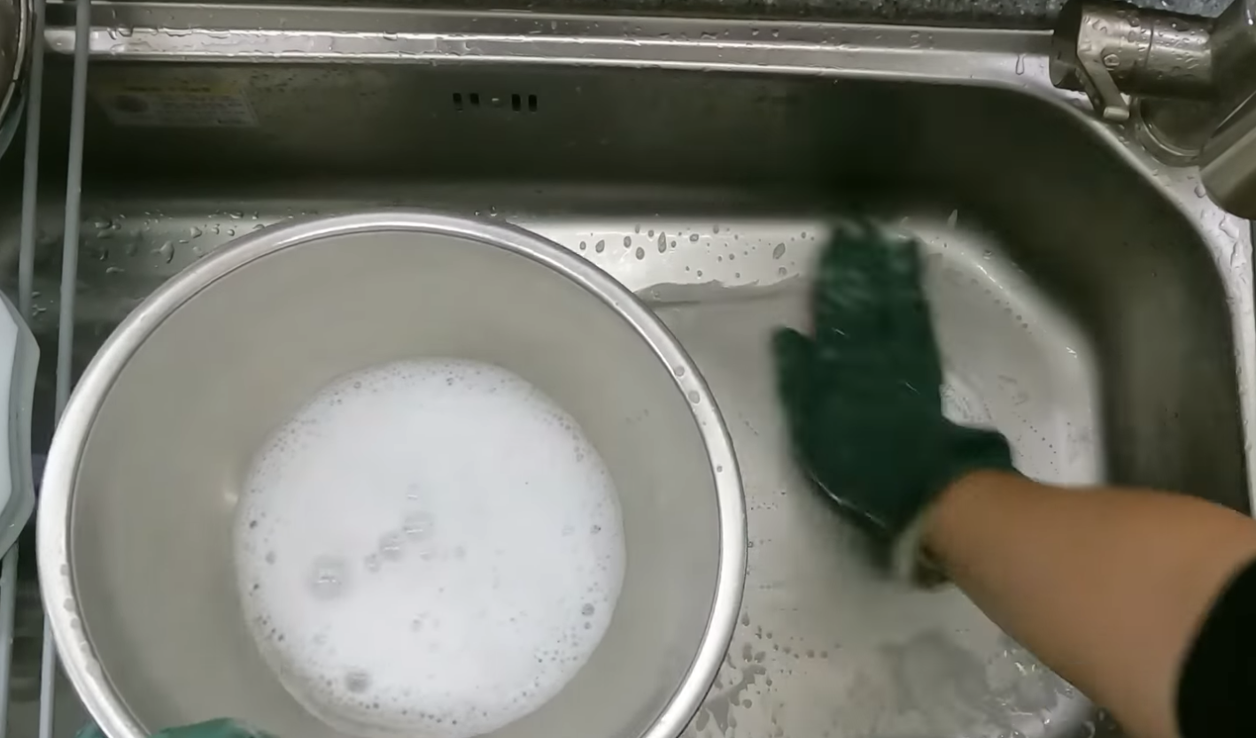 4. 1차 세척을 마쳤다면 희석된 세제로, 기름기가 없고 덜 오염된 작은 용기부터 순서대로 세척해 줍니다.