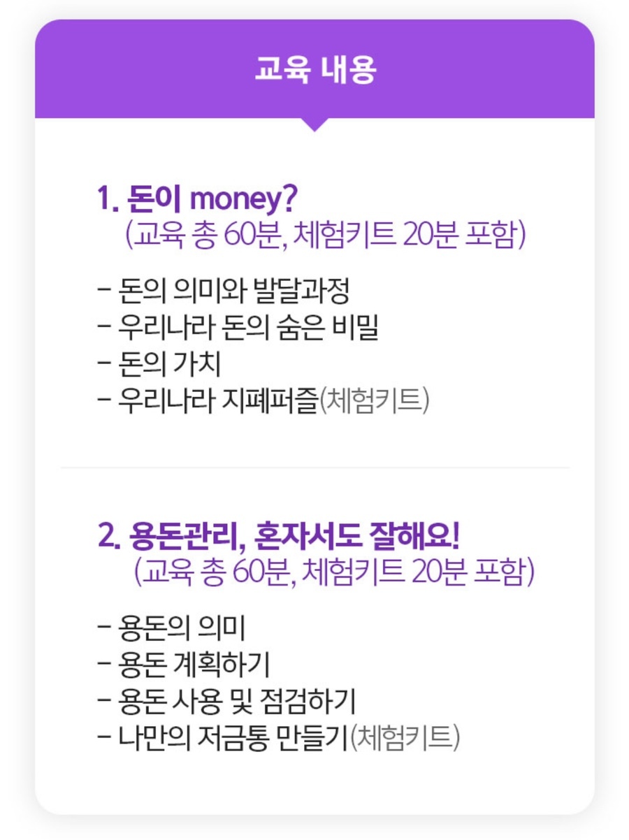 2. 용돈관리, 혼자서도 잘해요! (교육 총 60분, 체험키트 20분 포함)