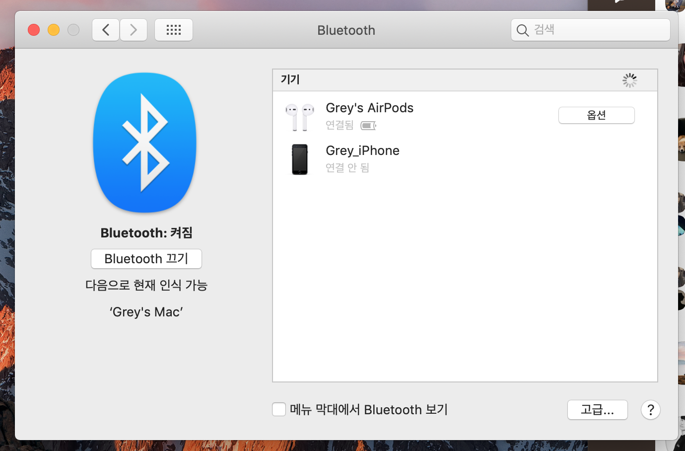 ☞ 맥북 : 아래와 같이 <시스템 설정>에 가서 <블루투스> 검색한 후 에어팟에 마우스를 대고 우클릭하면 <연결> 표시가 나오고, 이를 클릭하면 자동 연결됩니다. (아이패드는 테스트는 못해봤지만, 대부분 비슷한 경로로 페어링 가능할 겁니다.)